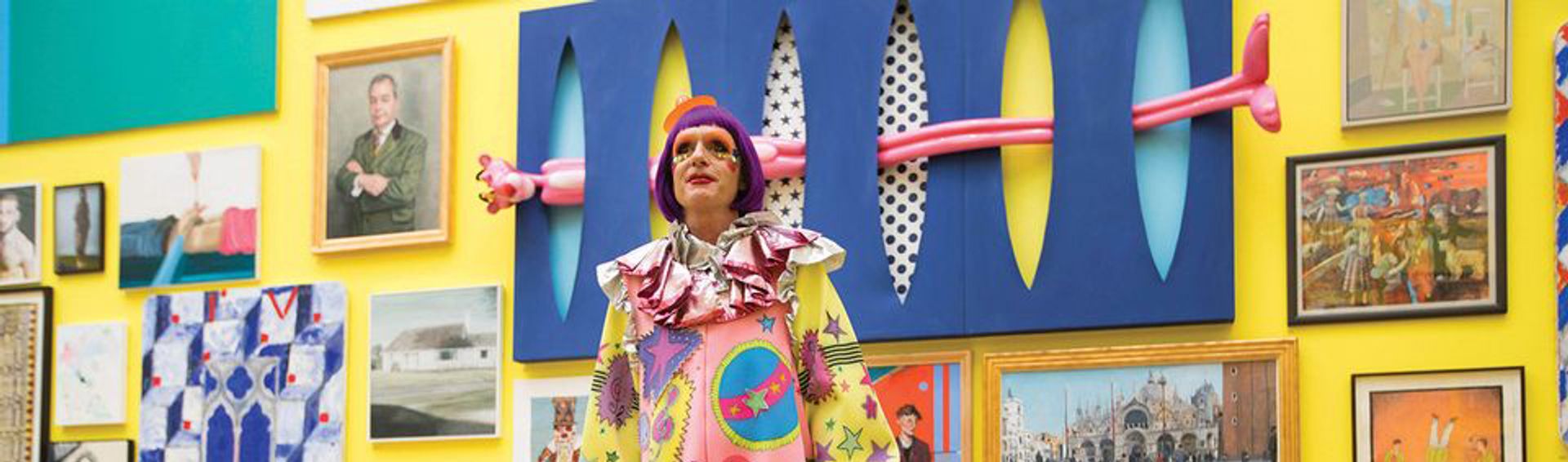 The British artist and chief guest curator Grayson Perry posing at the 250th Summer Exhibition in London Photo: David Parry