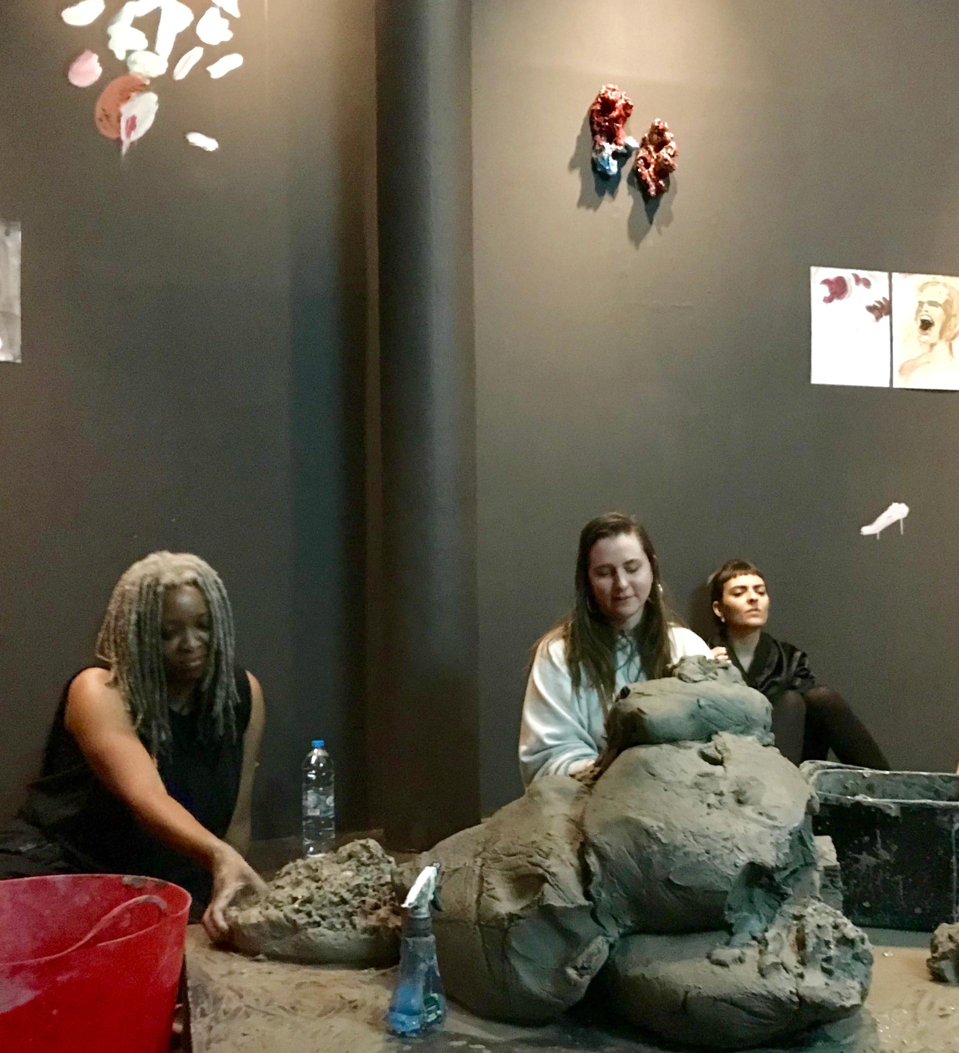 But last night there was empathy in abundance and the atmosphere was anything but bleak. As members of the audience—including Peake’s partner Eve Stainton—joined in the clay-play there was much discussion of the positive connotations surrounding the “excessively symbolic” notion of the hole. Similarly discussions abounded around clay's ability to express the physicality of emotional outpourings and to work where words fail—although there was also no risk of that on this occasion. While this show is now over, Florence Peake and Eve Stainton, who describe themselves as “an artistic romantic collaboration and simultaneously respective autonomous artists” will be premiering their new work, Apparition, Apparition (2019) as part f the performance programme of the Venice Biennale.