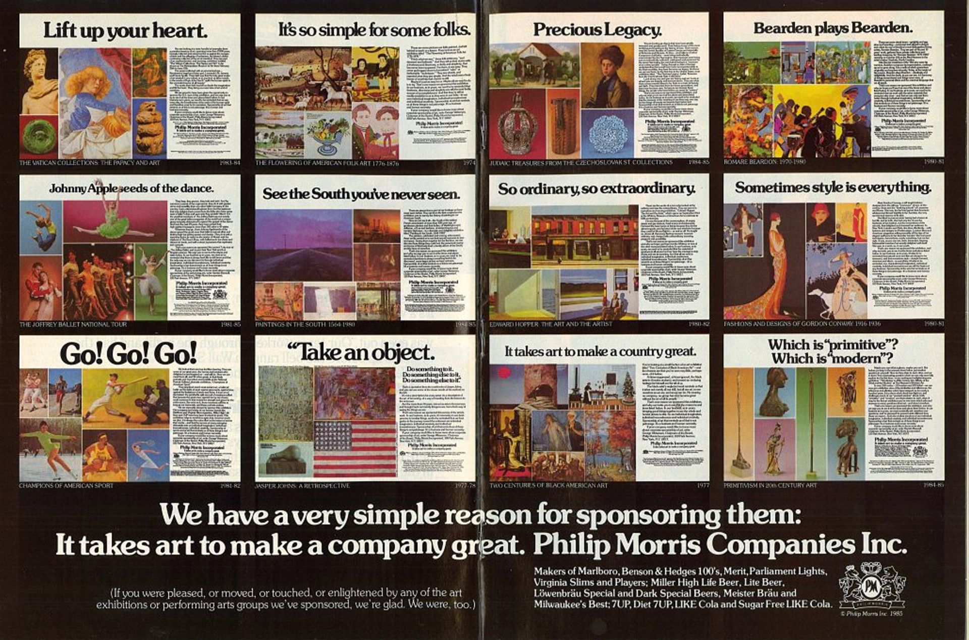 A 1985 Philip Morris ad promoting its arts sponsorship Courtesy of the Center for the Study of Tobacco and Society and the University of Alabama