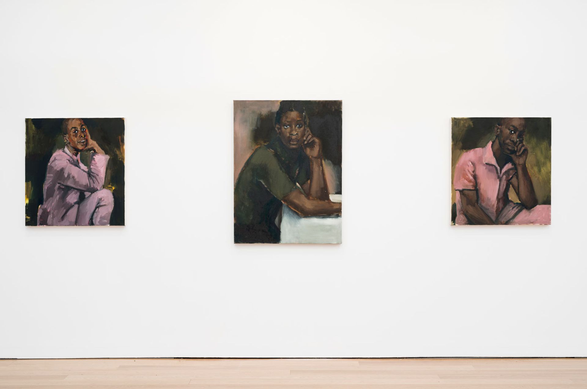 Lynette Yiadom-Boakye's Camelot 2, Camelot I (both 2019) and Three Corners (2018) © Paul McCarthy