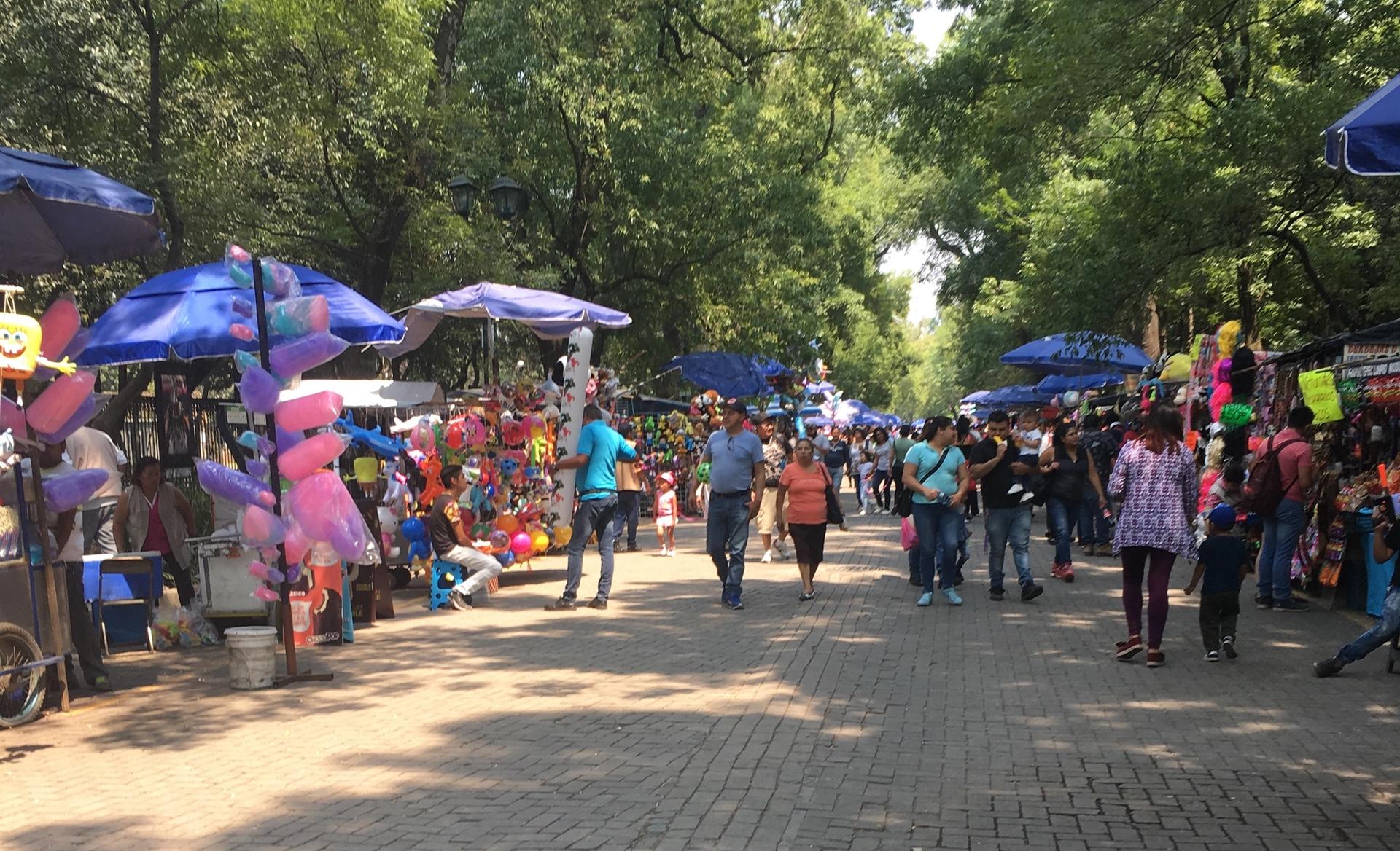Scores of vendors line up to display mountains of colourful chips, spicy fruits, and plastic toys to families strolling through Chapultepec Park Photo: Vanessa Thill