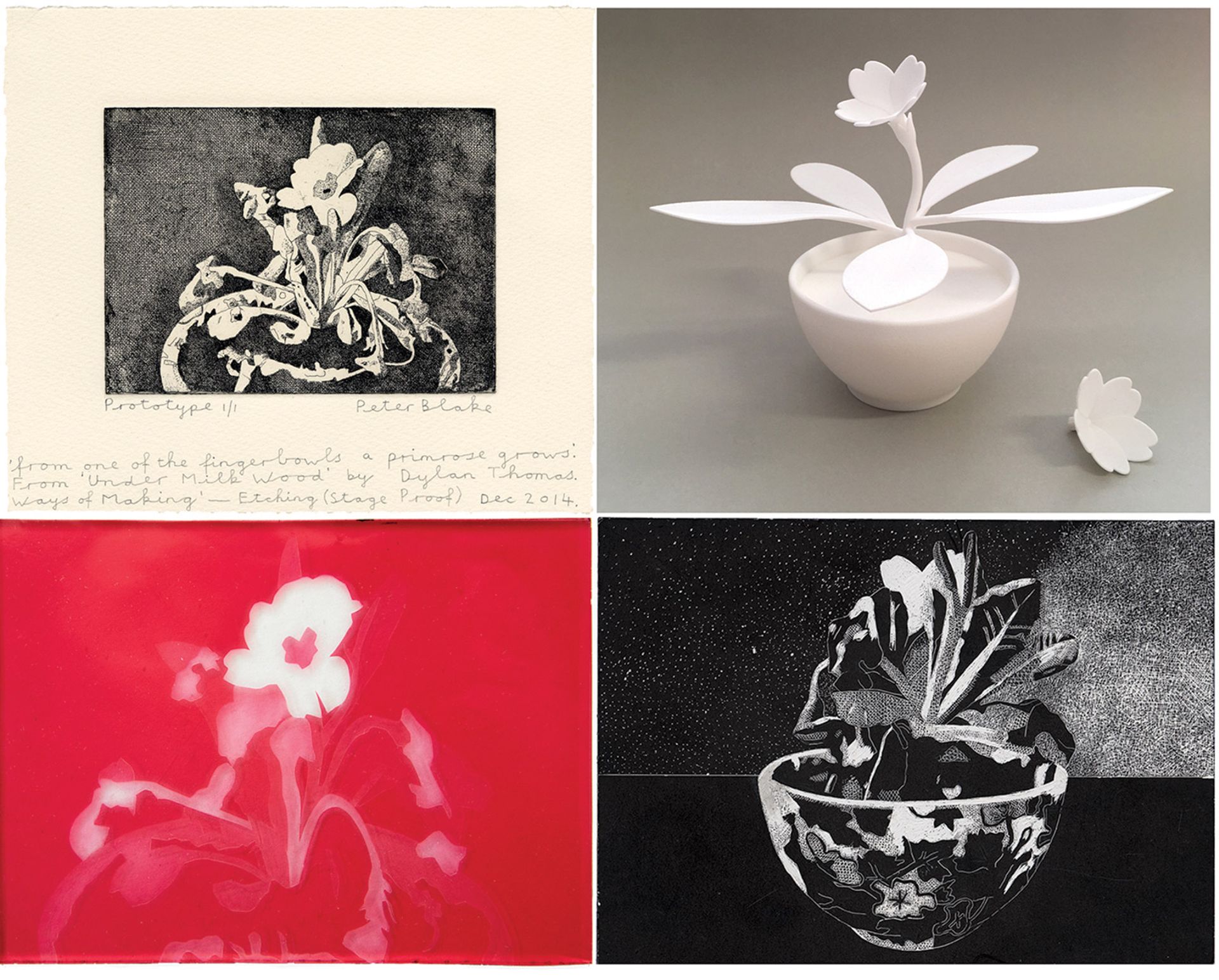 When Peter Blake visited an art school recently, he was shocked to see students all working at computers. “Nobody was drawing or painting,” he says. It sparked a new project, Ways of Making, a collaboration between the British artist and Worton Hall Studios with the aim of, in Blake’s words, “covering all the different ways of working in an age where some of them are dying out”. For the project, Blake will recreate the same image in every known medium: over 50 processes from lithographs and etching to sculpture and 3D printing. The original image, a photograph of primroses in a bowl, is inspired by a line from Dylan Thomas’s “Under Milk Wood”—”From a finger bowl, a primrose grew.” The fruits of this exploration of edition making in all its forms will be unveiled at the London Original Print Fair. Peter Blake, Ways of Making (2019). London Original Print Fair, London, 25-28 April. From £600 upwards. Photo courtesy of the London Original Print Fair