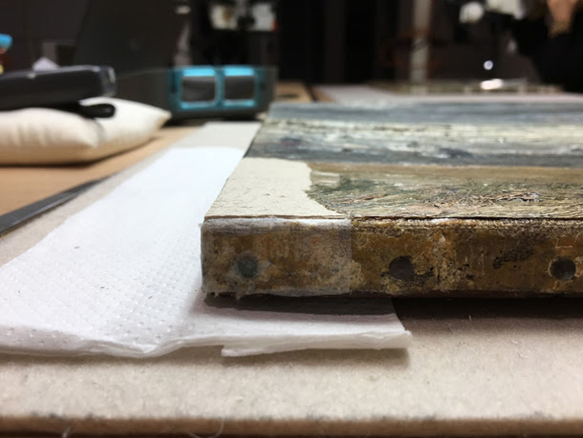 View of the Sea at Scheveningen with the cream-coloured replacement section, before retouching Photo: Saskia van Oudheusden