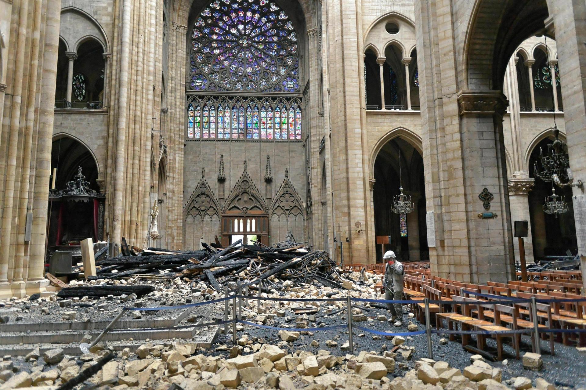 The debris inside Notre Dame cathedral Sipa via AP Images