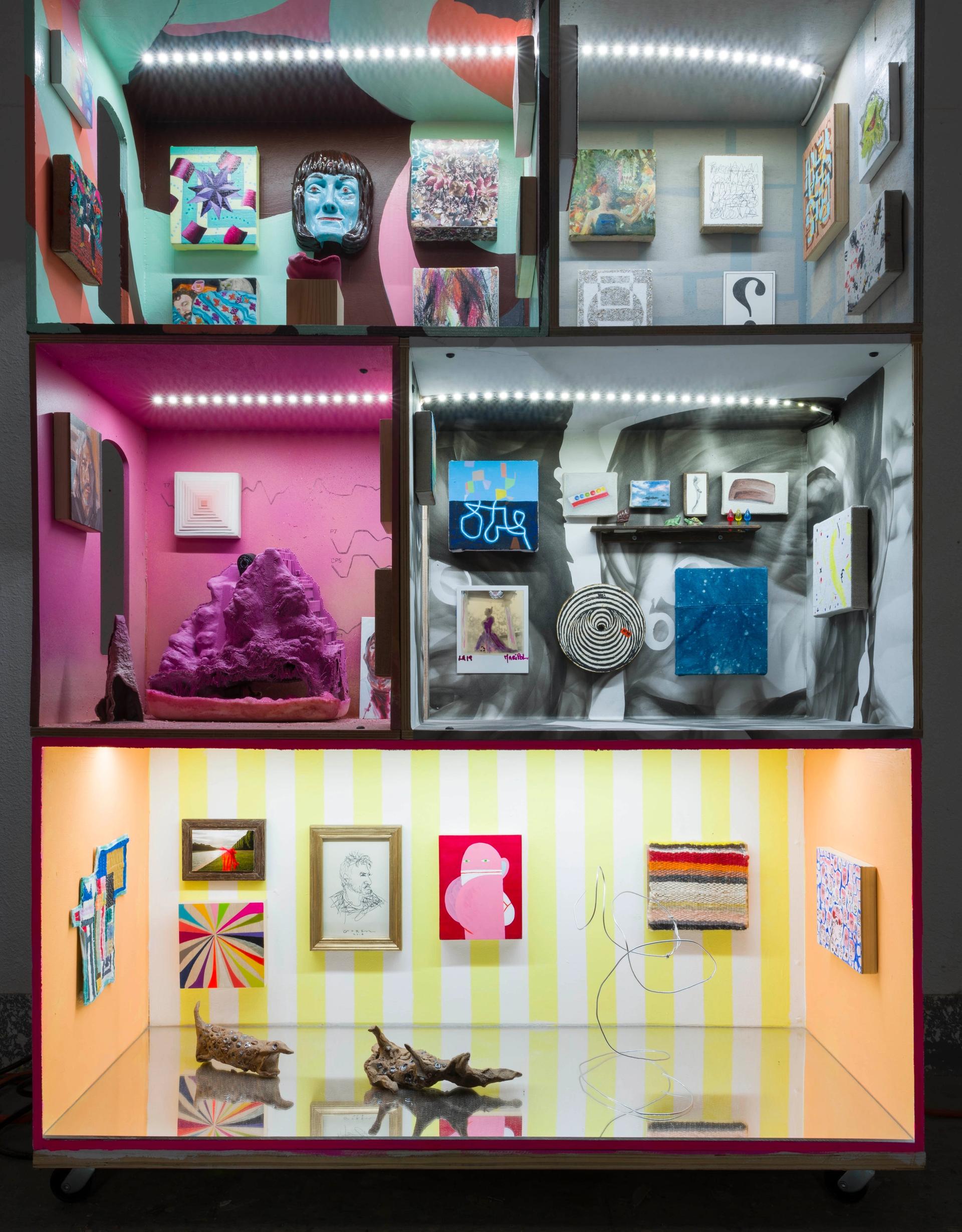 Adventurous and thought-provoking but remarkably free of big artistic statements and the attendant egos, an exhibition at the artist-run project space Serious Topics in Los Angeles might be the antidote to the international biennial surveys opening next month. The artists who organised the show, Kristin Calabrese, Joshua Aster and Torie Zalben, call it Dreamhouse vs Punk House (Plus Cat House). Very few of the nearly 200 miniature paintings and sculptures included measure more than 5 by 5 inches and most are significantly smaller—beautifully installed in three hand-built, high-rise dollhouses, each with its own character.