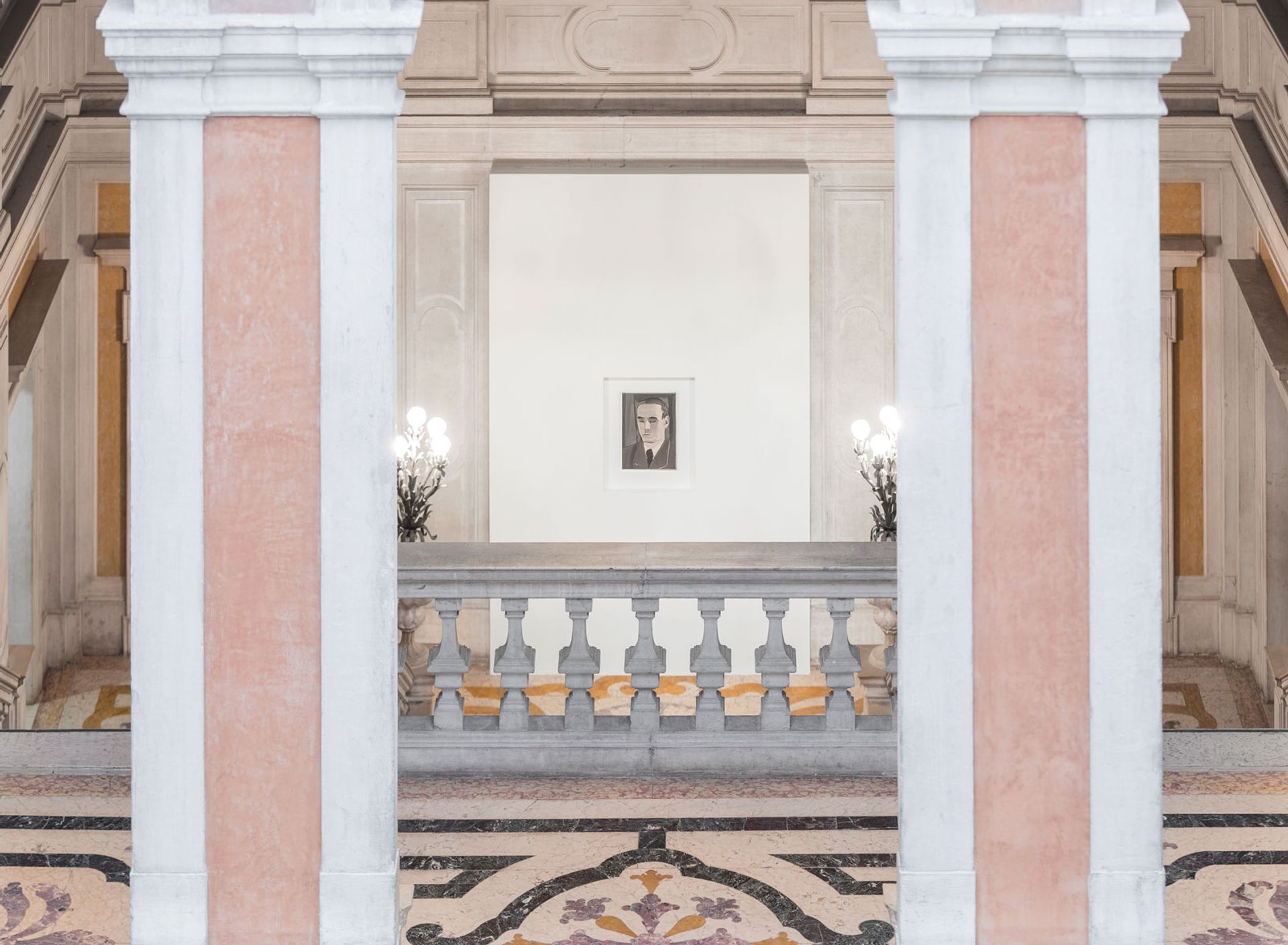 The show—the first time the Venetian museum is hosting an exhibition by a living artist—is thematically arranged around the building’s architecture. The three main rooms, the “trio sonata”, are dedicated to the artist’s portraits, self-portraits and nudes, while the four adjacent smaller rooms—the “string quartet”—feature his drawings.