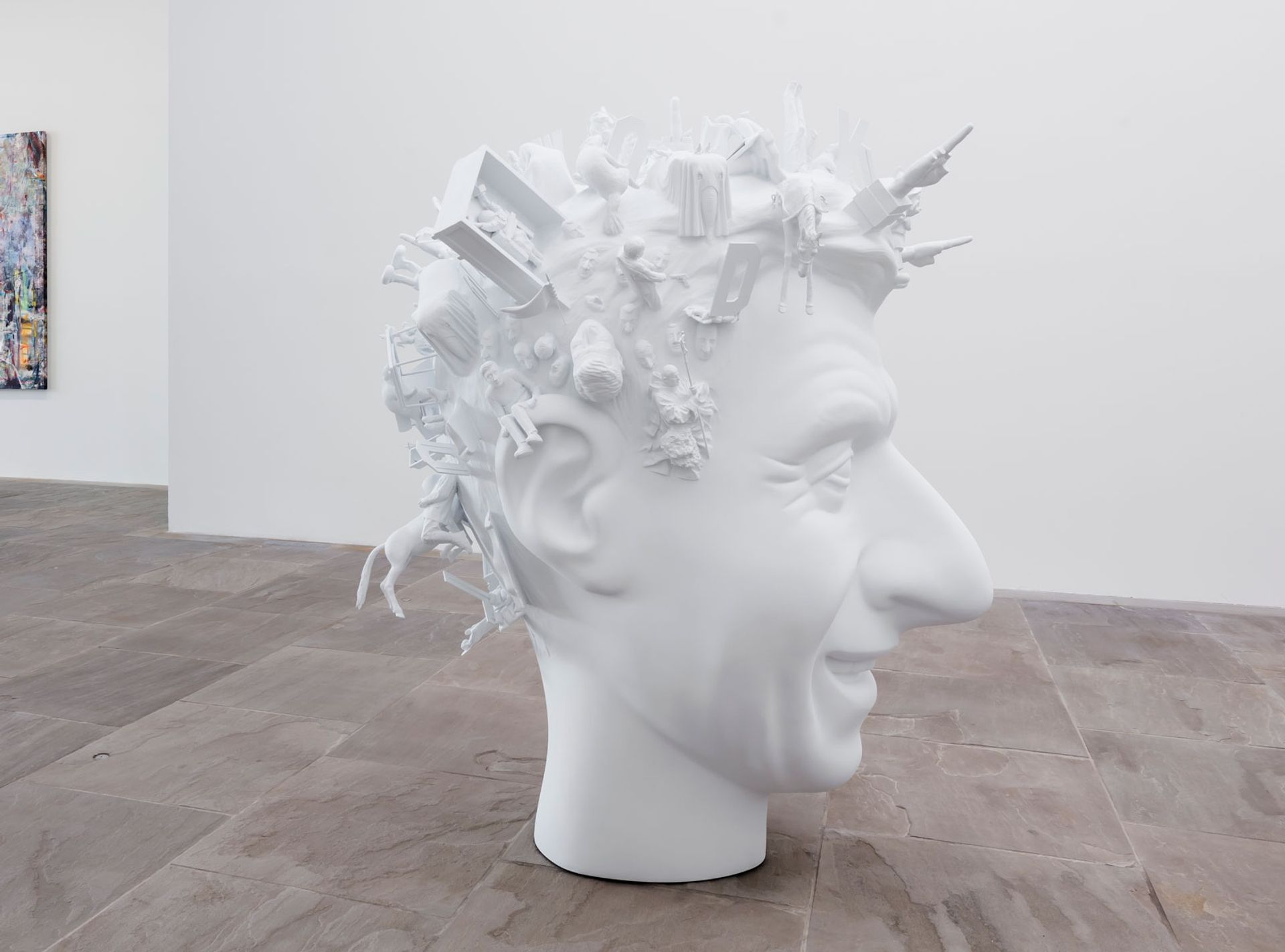 The specially-commissioned sculpture took the exhibit’s title and theme as its inspiration and features models of all of Cattelan’s best-known works emerging from his head. “[Cattelan] says the source is someplace you are afraid to go,” explained the foundation’s director, Charles Carmignac, during a preview of the show.
