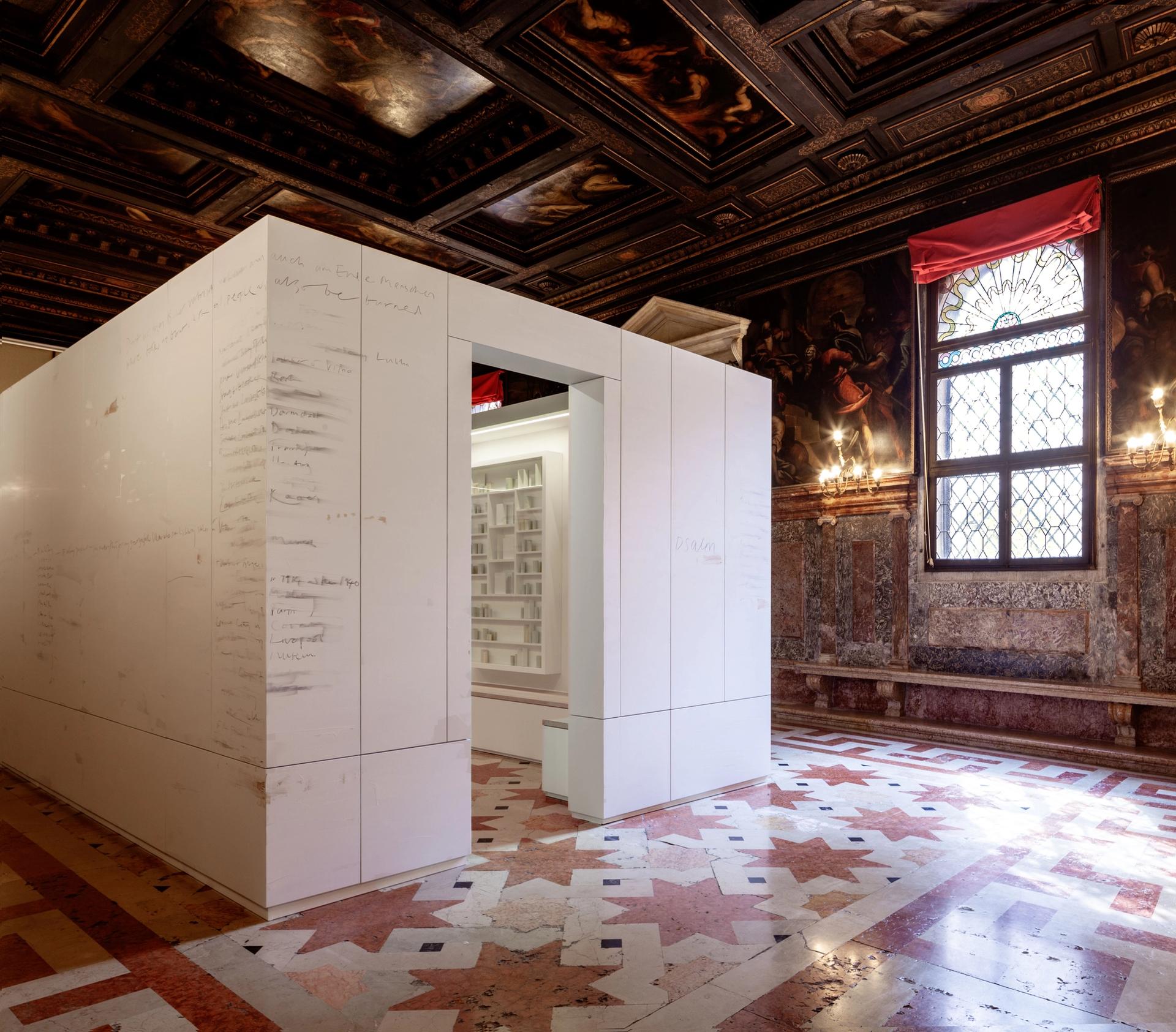 Visitors are encouraged to read and write in the books, most of which are in translation. De Waal has inscribed the names of lost libraries on the exterior of the specially built structure, which will be presented in Dresden from November to February 2020, followed by the British Museum. De Waal announced the news at a briefing today held by The Art Newspaper in Venice, saying that “for it to continue its travels to Dresden and then London is wonderful”.