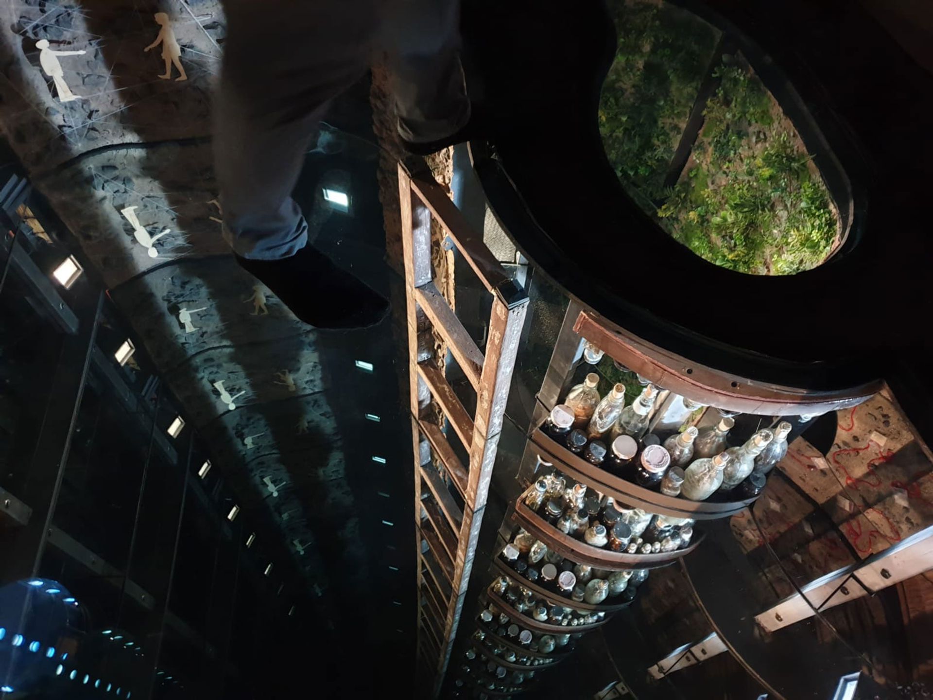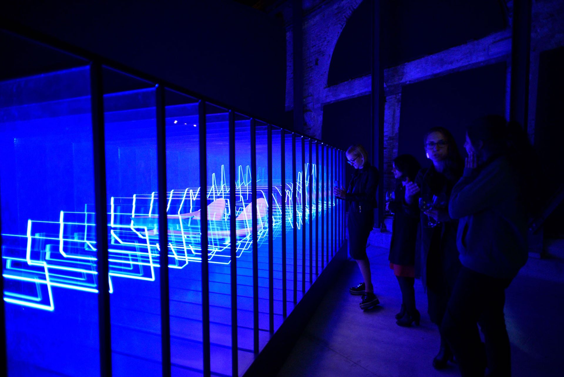 Entering the darkness of the Philippine pavilion, it looks at first glance like the artist Mark Justiniani has been burrowing through the floor to excavate the centuries-old foundations of the Artigliere building. As your eyes adjust, you realise that the tunnel of crumbling masonry is just one element of a bigger illusion. The installation Arkipelago (2019), inspired by the hybrid histories of the island nation, consists of three glass-topped biomorphic platforms, or islands, which harness the same infinity mirror technique used by Yayoi Kusama and Ivan Navarro. In place of their twinkling coloured lights, Justiniani’s work has a creepier doll’s (fun)house aesthetic, with plunging recessions of household objects—paper stacks, suspended apple cores, wine glasses and a modest meal on a banana leaf. For the full vertigo experience, take your shoes off, walk across the glass and do look down.
