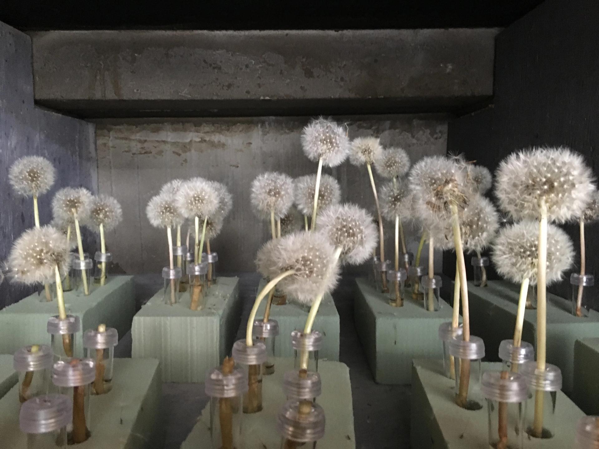 In that final room, you can watch the gentle drifting of dandelion fuzz through large windows, a mesmerizing form of drawing in space, and receive your own individual dandelion stalk for wish-making purposes. The three members of The Art Department I met on site (who work anonymously) explained that this light shower of dandelion puffs was the generating idea behind the entire project, which they developed after visiting various industrial sites from pickle factories to water treatment plants.
