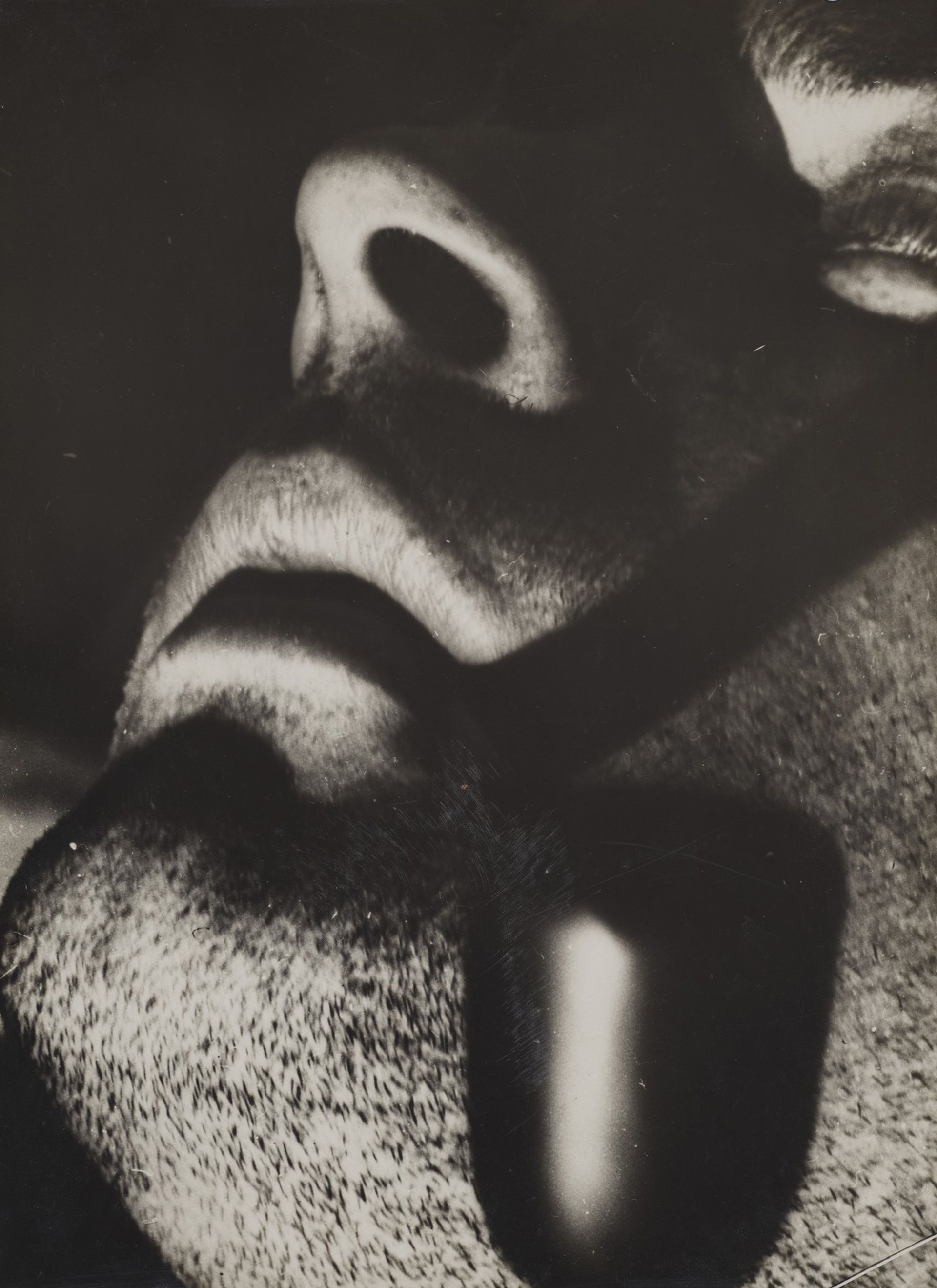 Surprises? I love them. What is the point of seeing a show that merely confirms what you already know? I knew, for instance, next-to-nothing about Bauhaus photography. Werner Feist’s Kurt Stolp with Pipe (1929) is just about the most striking portrait I have seen in a long time, a tight close-up, starting with Stolp’s stubbly chin—a whisker jungle—and climbing up his face as if it is a mountain. Marianne Brandt’s collage, Untitled with Anna Mae Wong (1929) is so wild and unexpected that the image is barely contained by her disciplined Bauhaus structure. It is a study in exoticism, that embraces not only the movie star Wong, who later was in King Kong, but a zebra, metal rivets, and glass.
