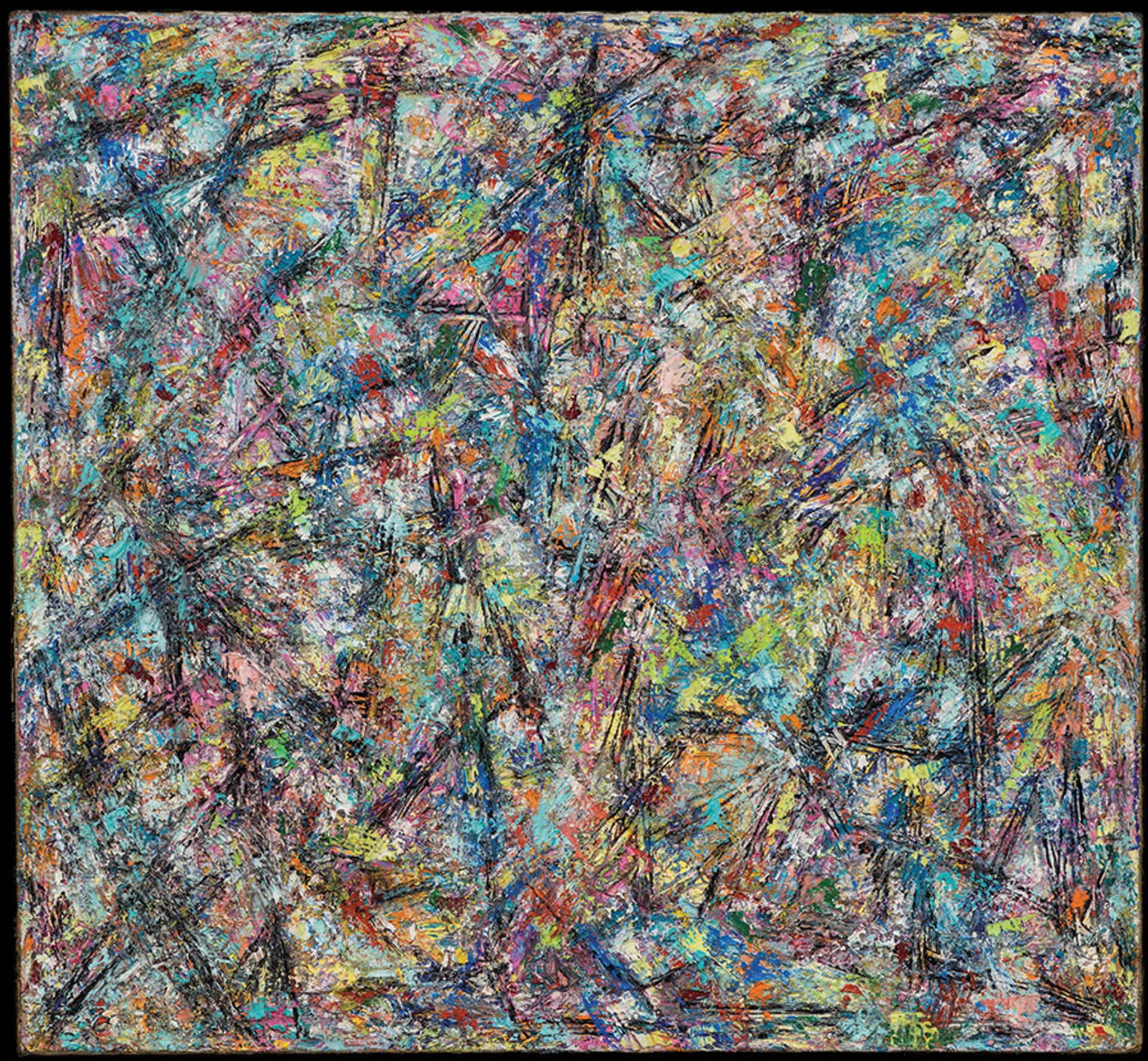 Re-evaluating Krasner began with the revisionist art history of the 1970s that rightly regarded the traditional Abstract Expressionist canon—first established by the sexist Clement Greenberg and amplified by Irving Sandler’s 1970 book Triumph of American Painting—as more or less restricted to dead white males. Ongoing feminism fuelled this shift in perspective, mainly for the good but sometimes overstating its case for reasons of gender revanchism. For example, a survey seen at the Brooklyn Museum in 2000 left mixed feelings. In short, Krasner appeared then as an uneven artist and one who was not quite such an outsider as the curatorial thesis suggested. Nor did Krasner ever establish a signature style. Instead, she roved restlessly over the decades between late Cubism, collage, calligraphy, minuscule and epic scale.