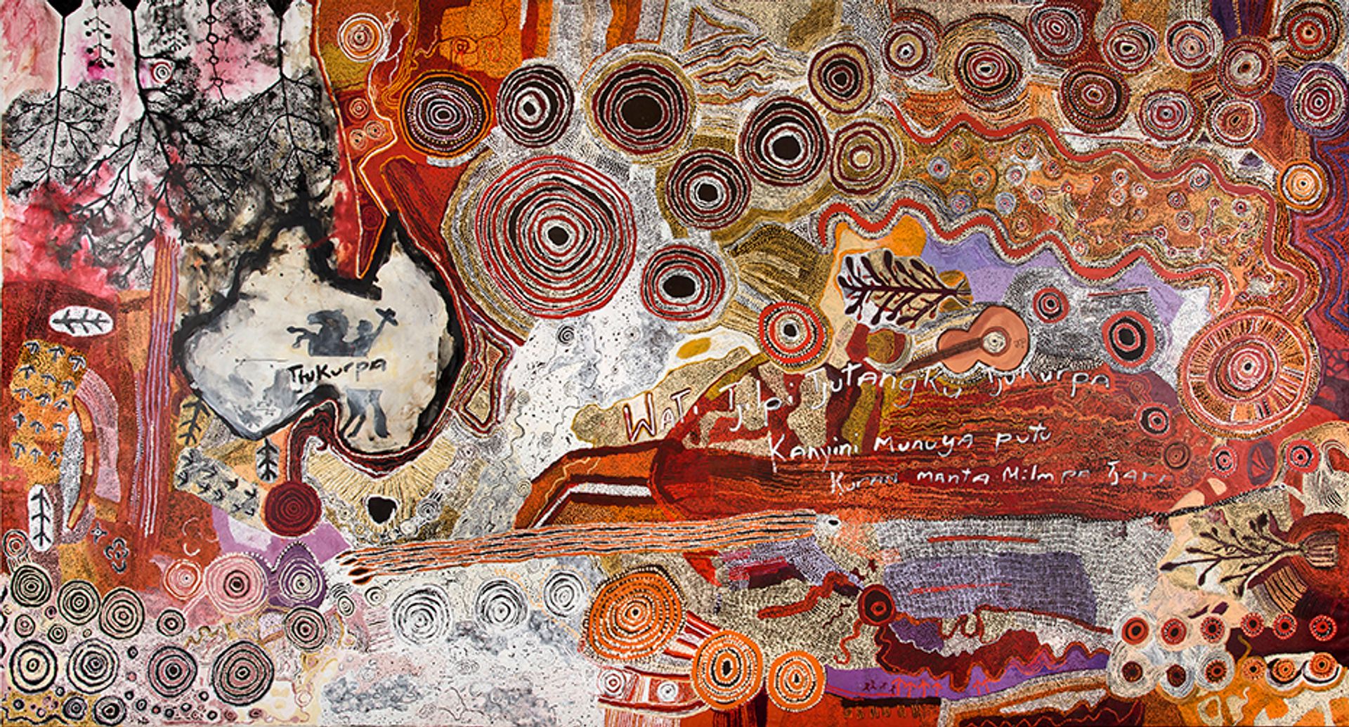Nganampa ngura manta milmilpatjara (our earth is sacred) © APY Art Centre Collective, Tjala Arts, photo: Vincent Girier Doufournier