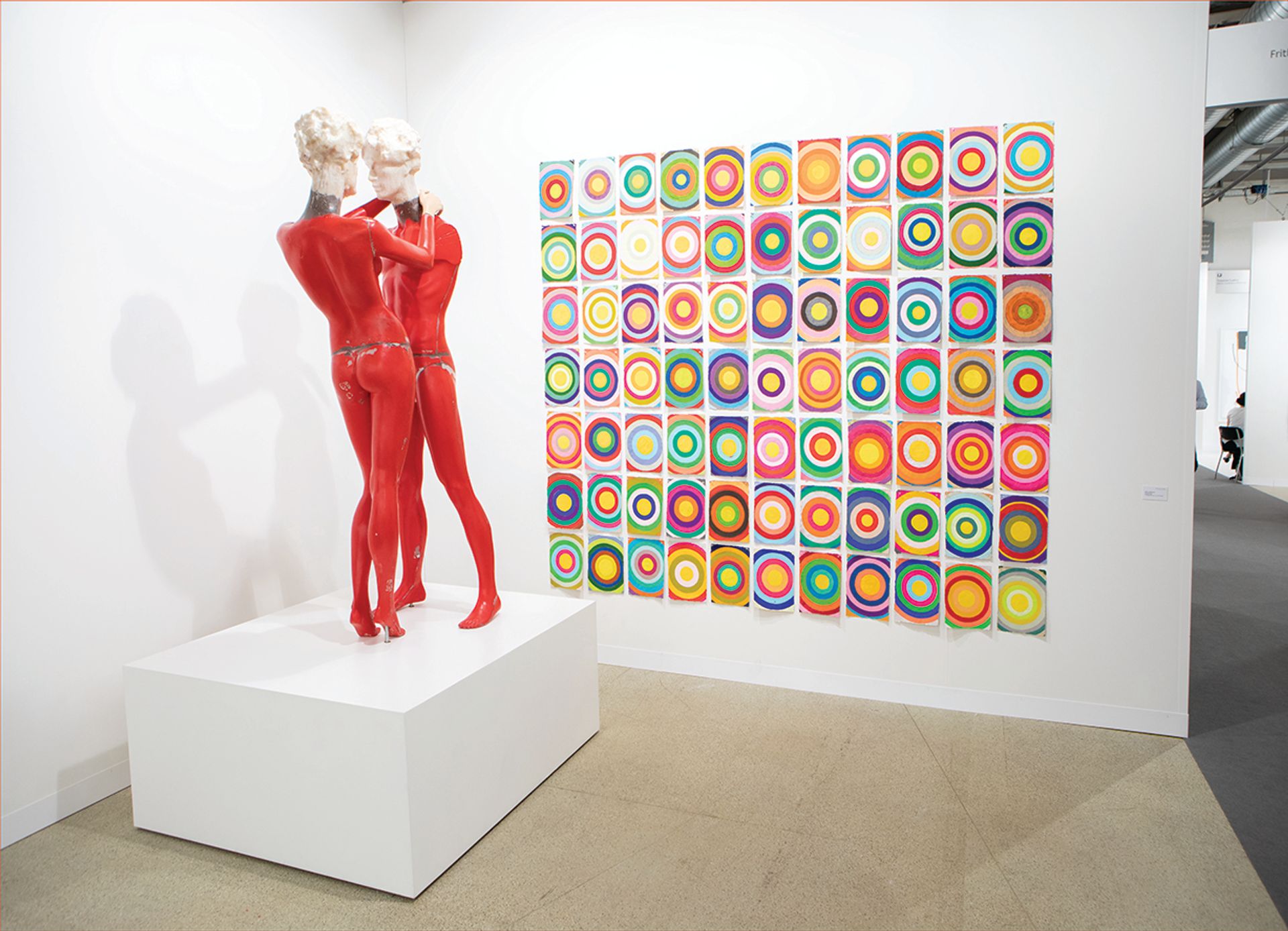 Pierre Huyghe, Timekeeper (Drill Core) Consortium (2018), Galerie Chantal Crousel: “This is almost a target. It reminds me of a target or a flower, which is basically the same thing. Huyghe does very different kinds of work. I like what he does because there is the involvement with the physical world, he goes into caves and stuff like that. For this work he sanded the surface of a wall so you can see the layers of paint that came before. I also like how it’s installed [on the floor of the stand]. He doesn’t want the work to be hung on the wall because it is a wall itself.” © David Owens