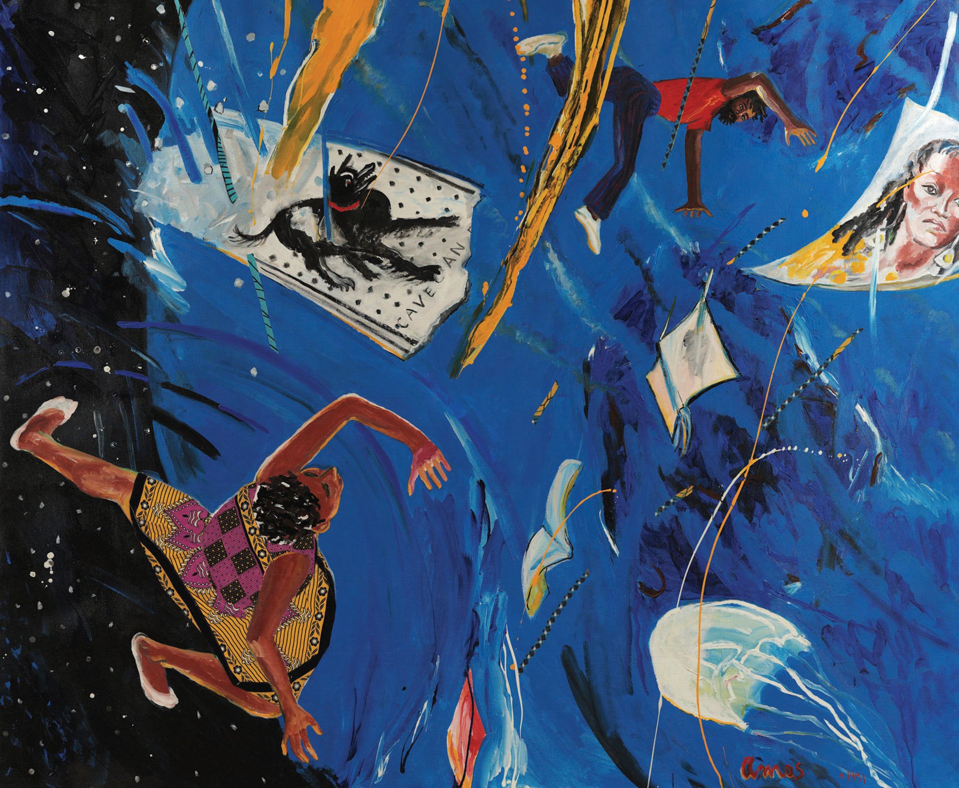 Emma Amos's Giza and Faith (1991) © 2018 Emma Amos / Licensed by VAGA at Artists Rights Society (ARS), NY Courtesy American Federation of Arts