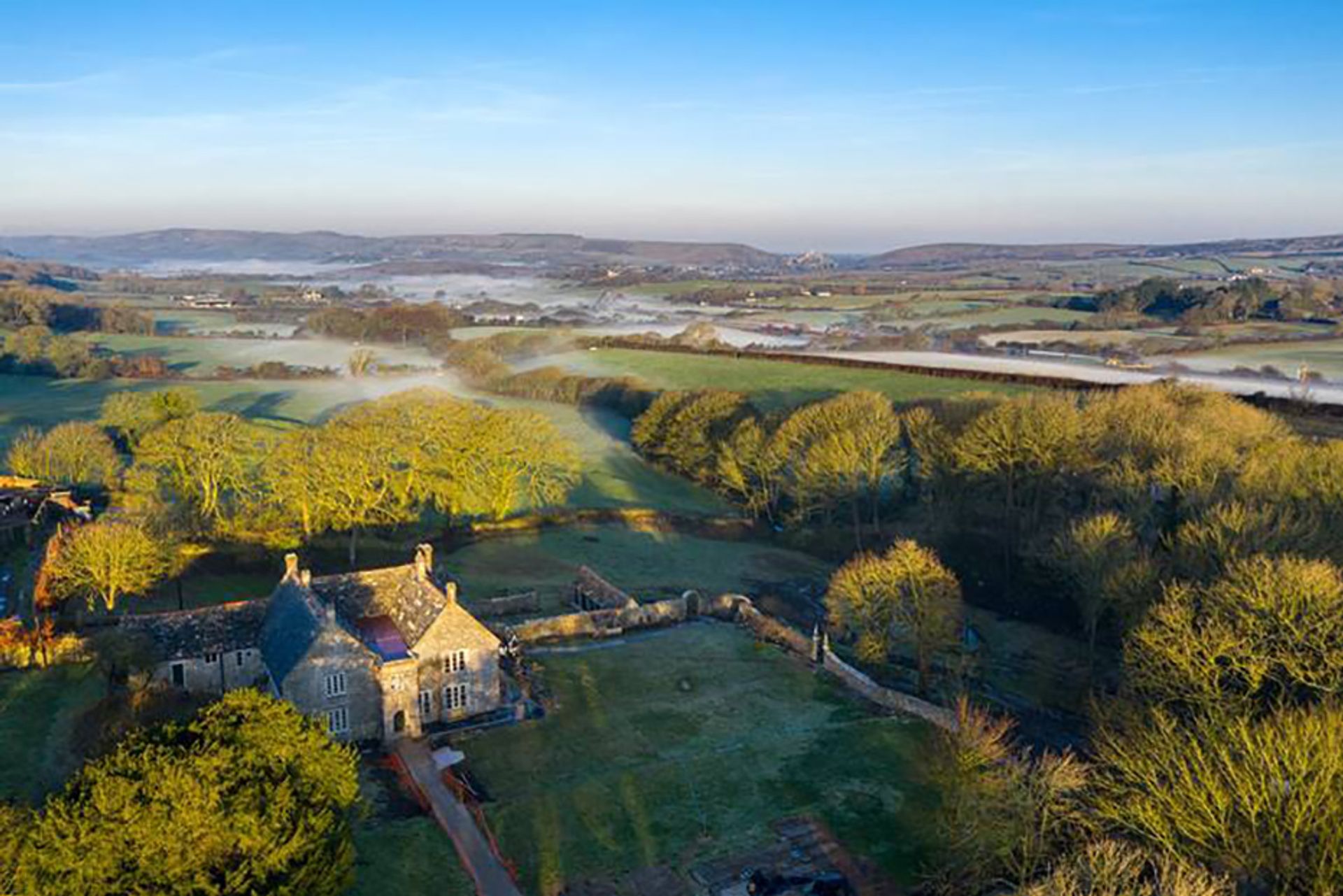 Aerial view of Dunshay Manor © Landmark Trust
