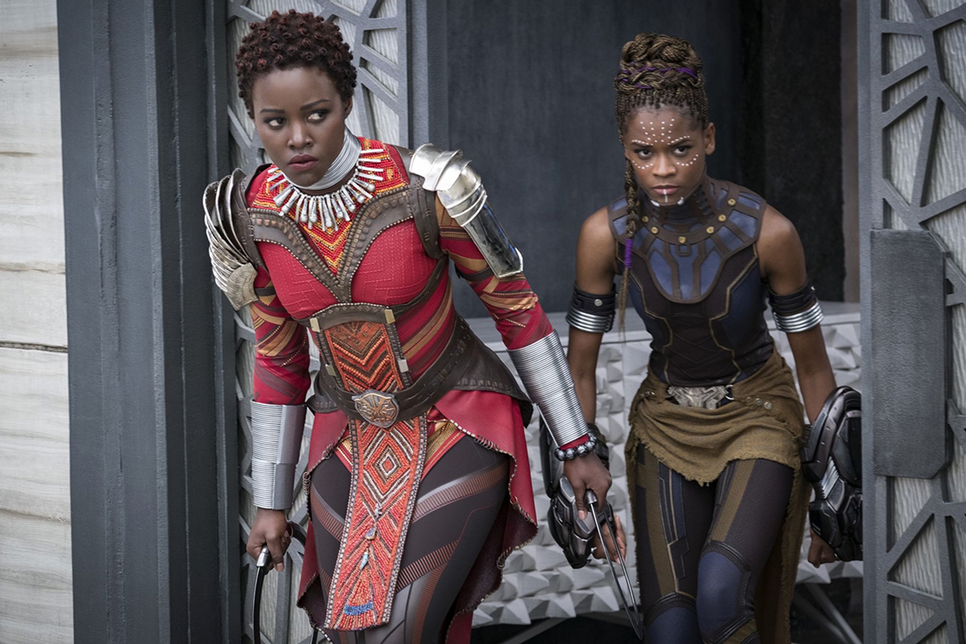 Lupita Nyong'o as Nakia and Letitia Wright as Shuri in Black Panther (2018) Marvel Studios