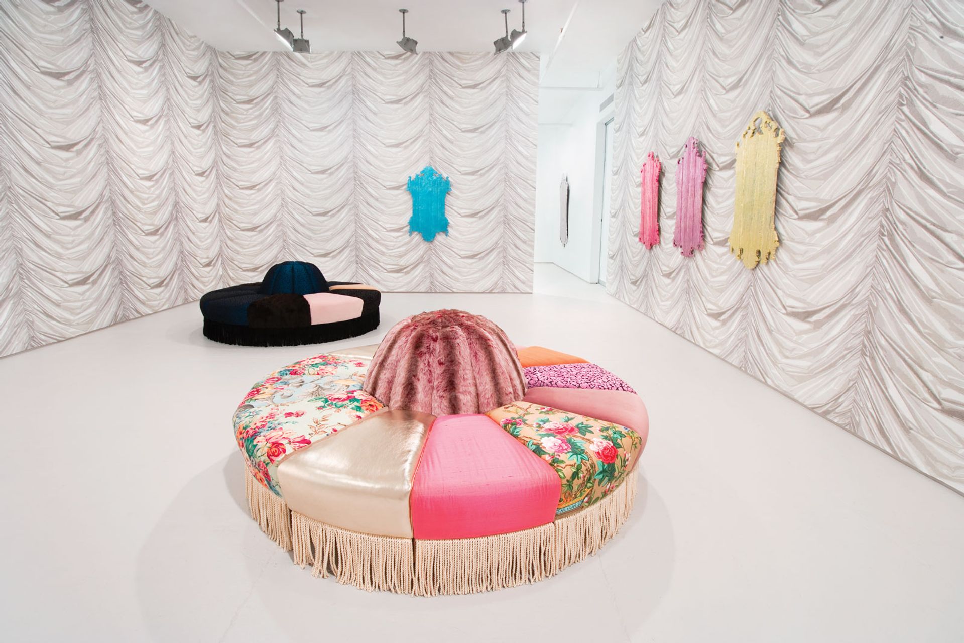 Overall, the show, with its massive saffron and tangerine florals by Robert Zakanitch, an immersive, sugary parlour with playful rococo influences by Virgil Marti and a Kehinde Wiley portrait from the artist’s Haiti series, turned out to be primed for Instagram stories and, more importantly, vitally relevant. Porter treats the museum space as a giant canvas for triggering conversations about cultural appropriation, gender identity and the body, and inclusivity, as well as who is granted or denied access to institutions and the art market, and why. Although the exhibition pleasantly blurs lines between craft, design and art through a devotion to pattern, there isn’t a piece in sight that is merely decorative, even the chairs.
