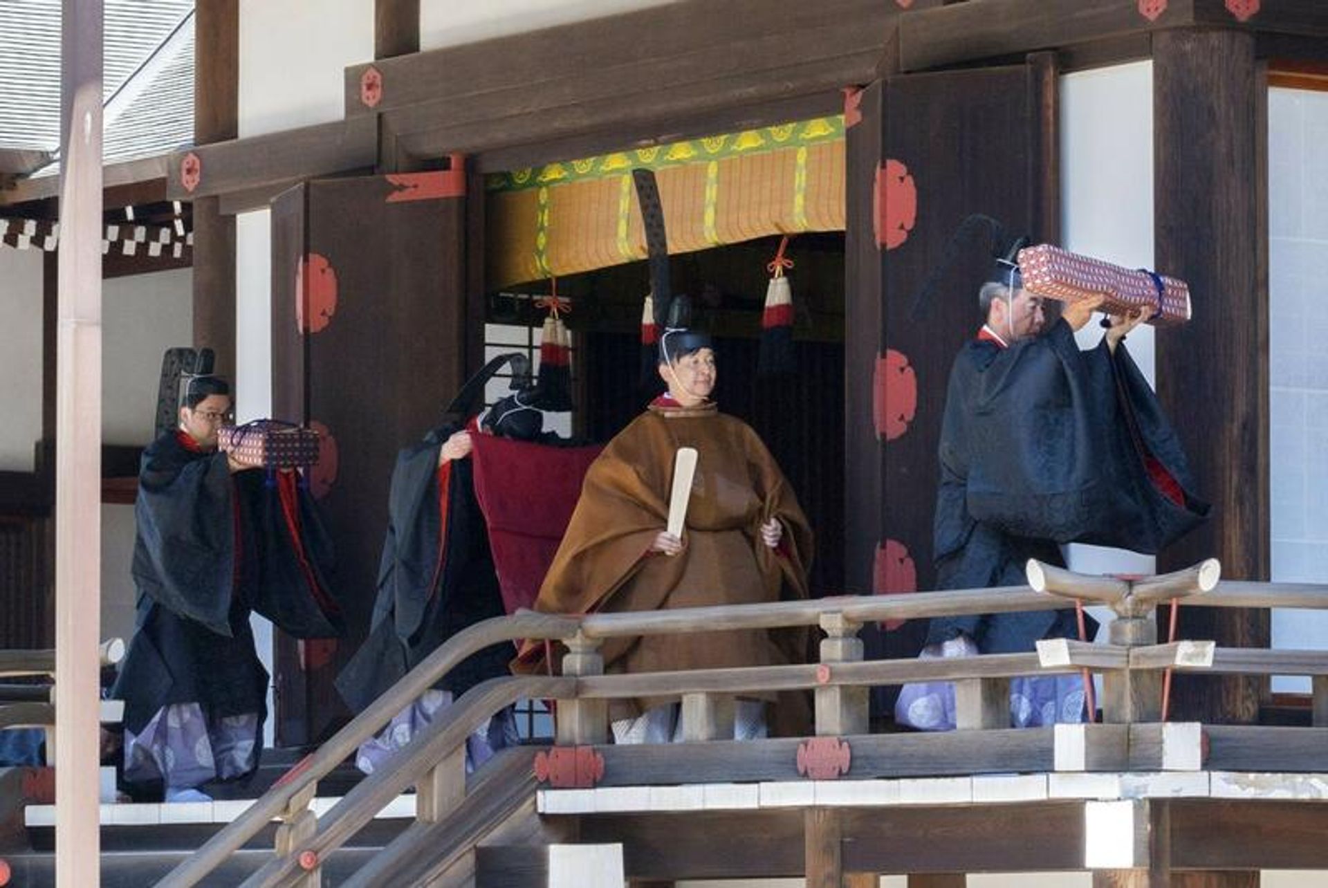The Treasures of the Imperial Family are presented to Naruhito during the Emperor's enthronement in Tokyo on 1 May 2019 Photo: Imperial Household Agency of Japan