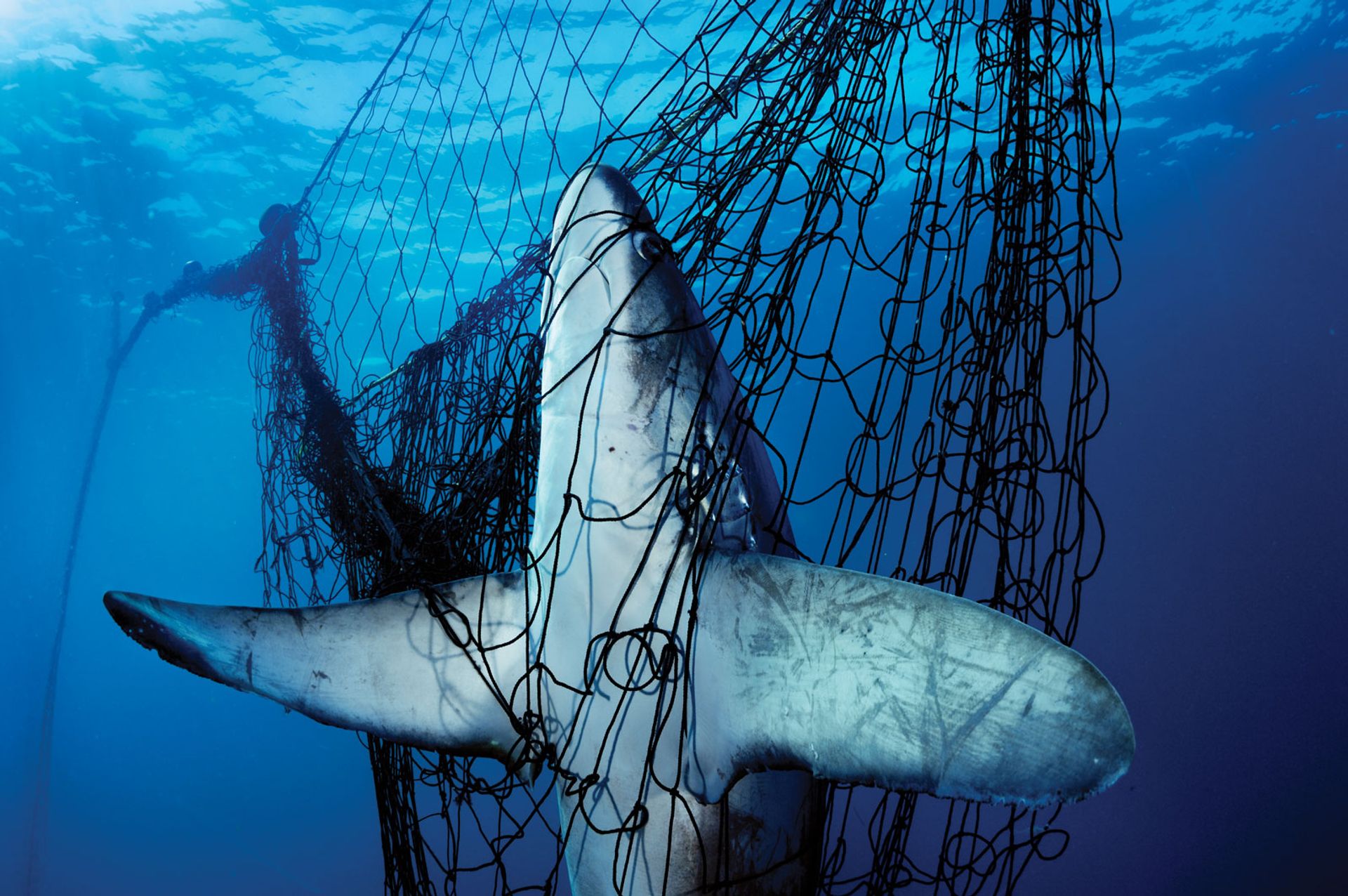 Bigeye Thresher Shark Caught in Net by Brian Skerry (2012) © Brian Skerry