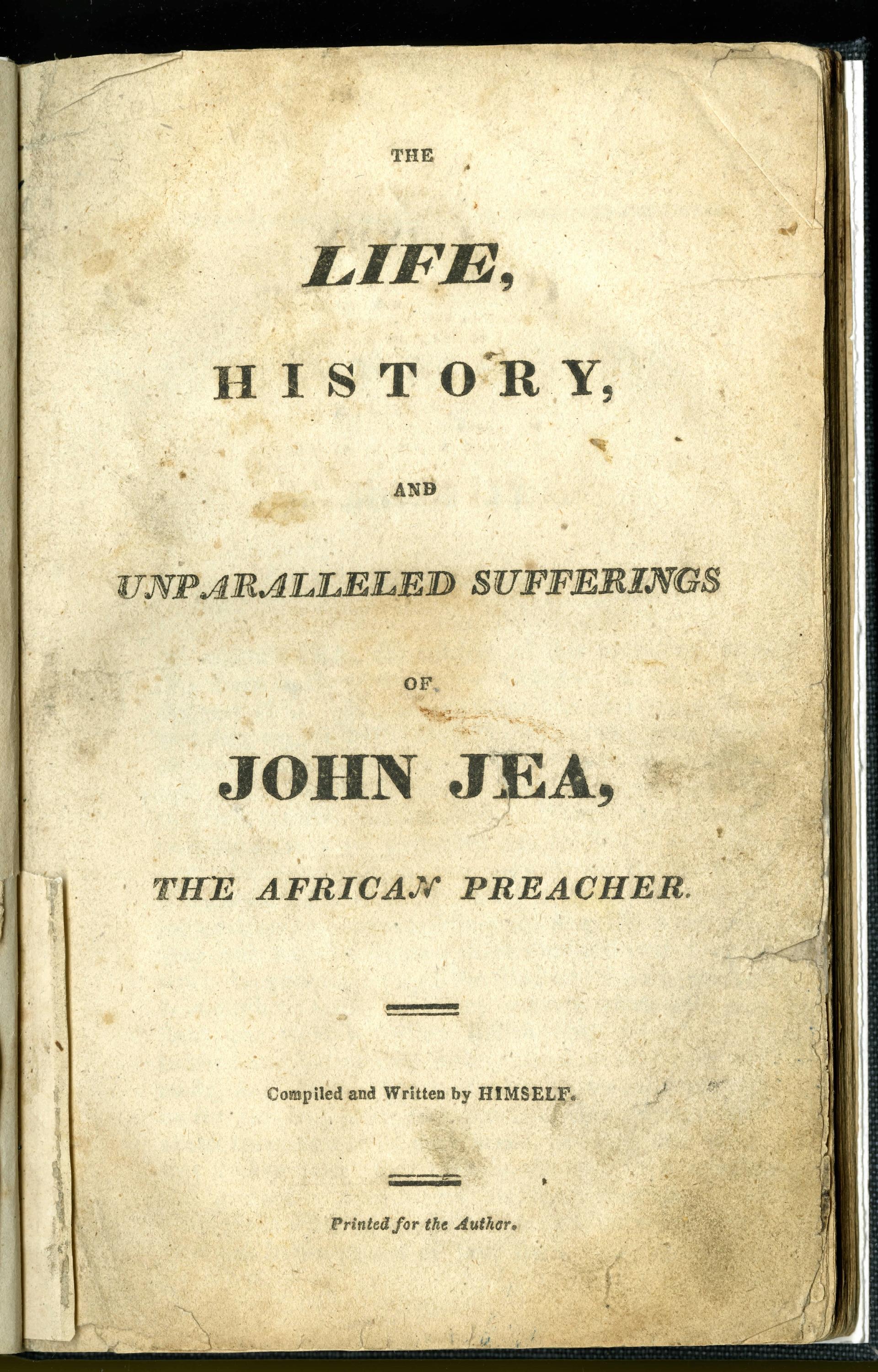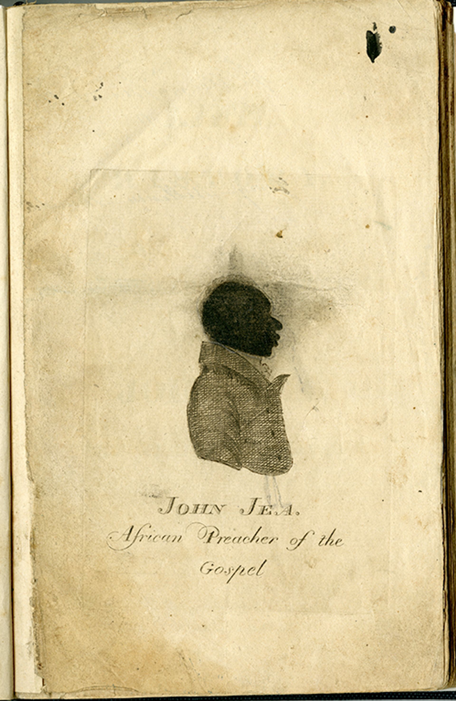 Frontispiece of The Life, History, and Unparalleled Sufferings of Jean Jea, the African Preacher, Compiled and Written by Himself (around 1800) Courtesy of Rare Book and & Manuscript Library, Columbia University