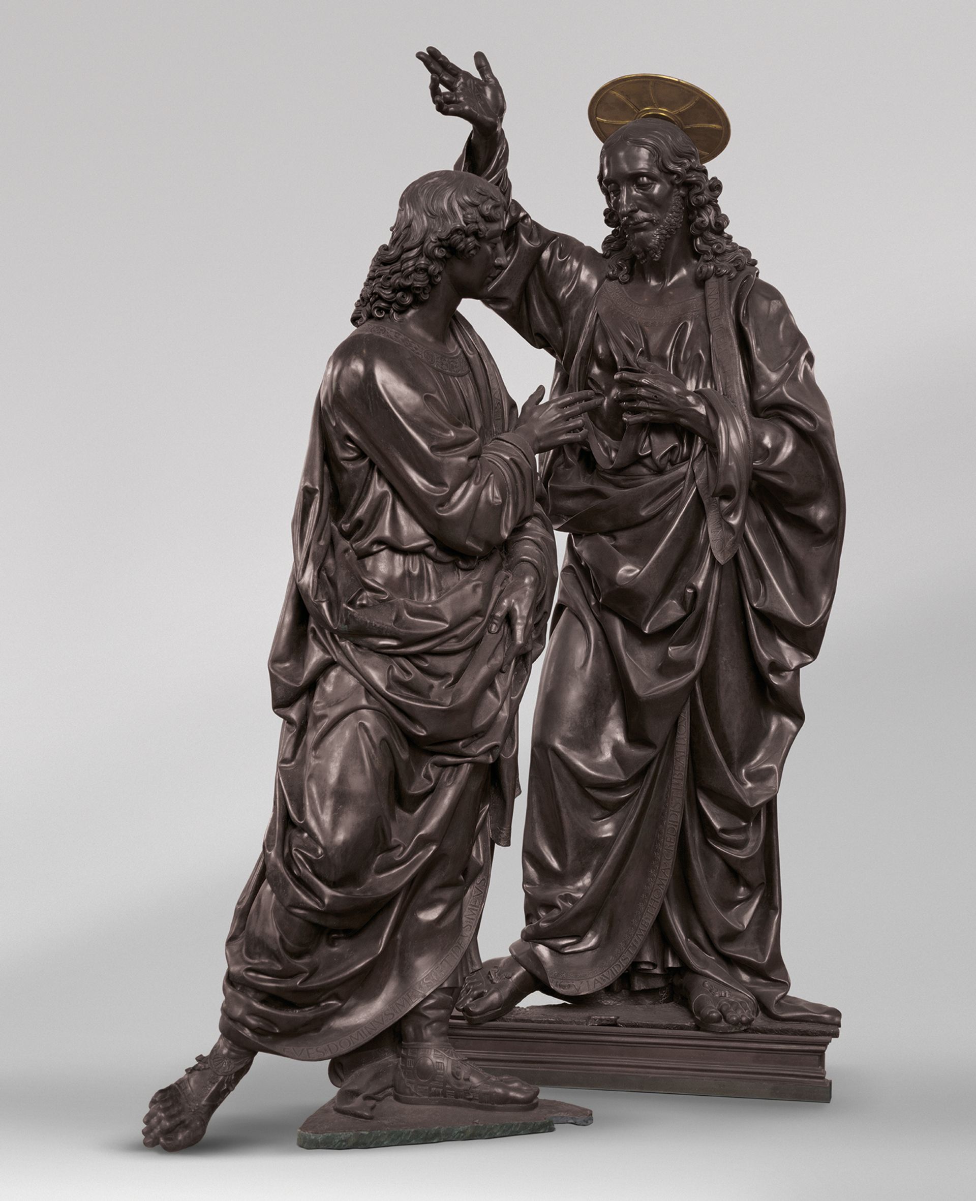 Verrocchio’s Christ and St Thomas (from Orsanmichele, lent by the Bargello Museum) was executed between 1467 and 1483, when the young Leonardo was working in Verrocchio’s studio and learning his craft Andrea del Verrocchio's Christ and St Thomas. Photo © Louis Frank