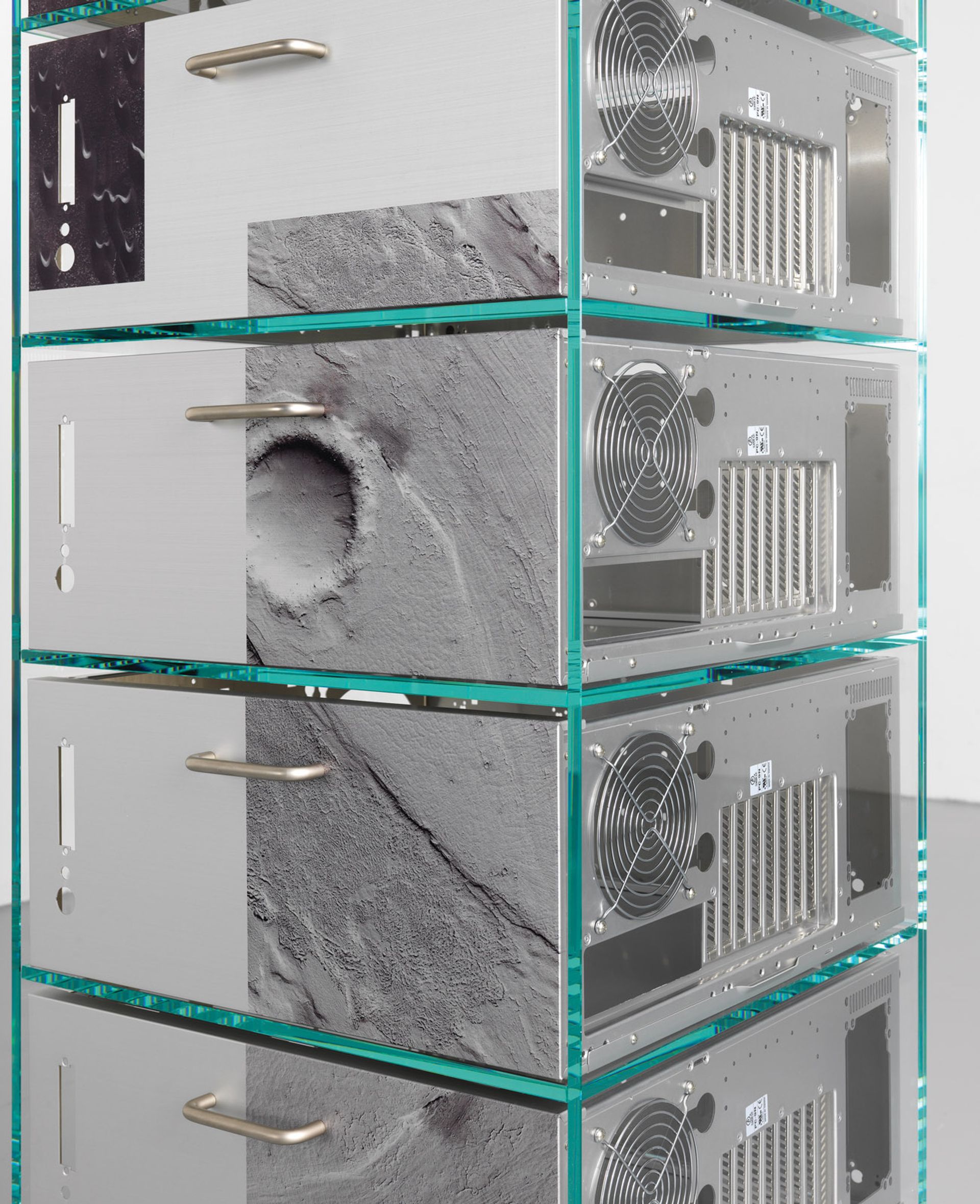 The office furniture series Ore Streams (2017-19), made out of electronic waste by the Italian design team Formafantasma (Andrea Trimarchi and Simone Farresin), is one example. Desk legs are fashioned from laptop keyboards and iPhone cases, while rare metals like gold, mined from tossed-out circuit boards, line trash bins. Since these tech objects no longer serve their intended function, their re-use reveals major issues in their design, namely their indestructability.