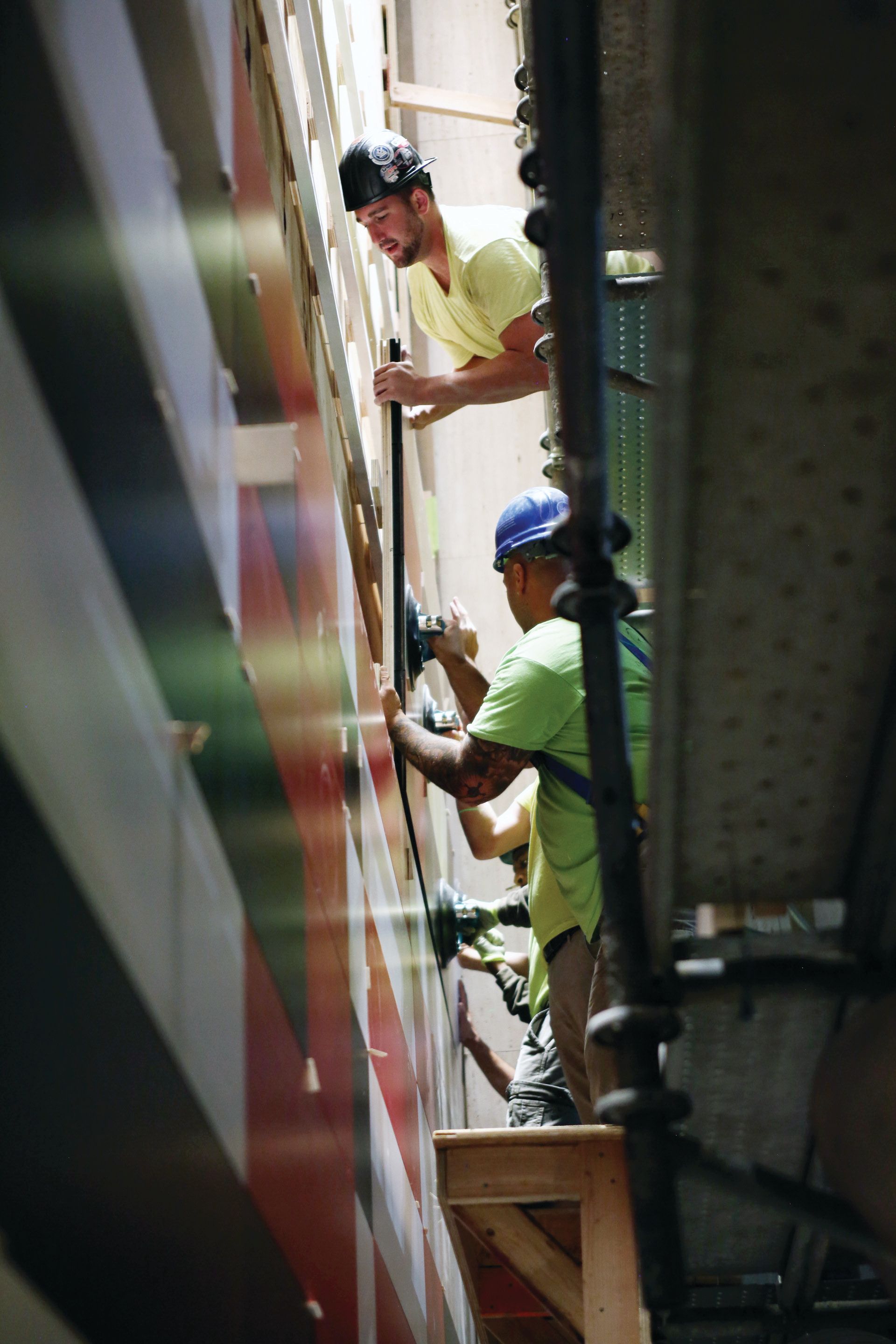 But as Albers once wrote: “No work of true art is ever destroyed.” The foundation held on to a few original panels for reference, and also had Albers’s instructions on how to refabricate the mural. When de Armas approached the foundation about recreating the work as part of the current renovation, they were able to match the colours and materials—minus the asbestos—exactly. The 486 new red, black and white laminate boards, joined in 42 panels, were built at All Craft Fabricators on Long Island, and the mural was carefully installed in the lobby over a few sweltering weeks in August. It was unveiled on 23 September, as the UN General Assembly held a historic Climate Summit in New York.