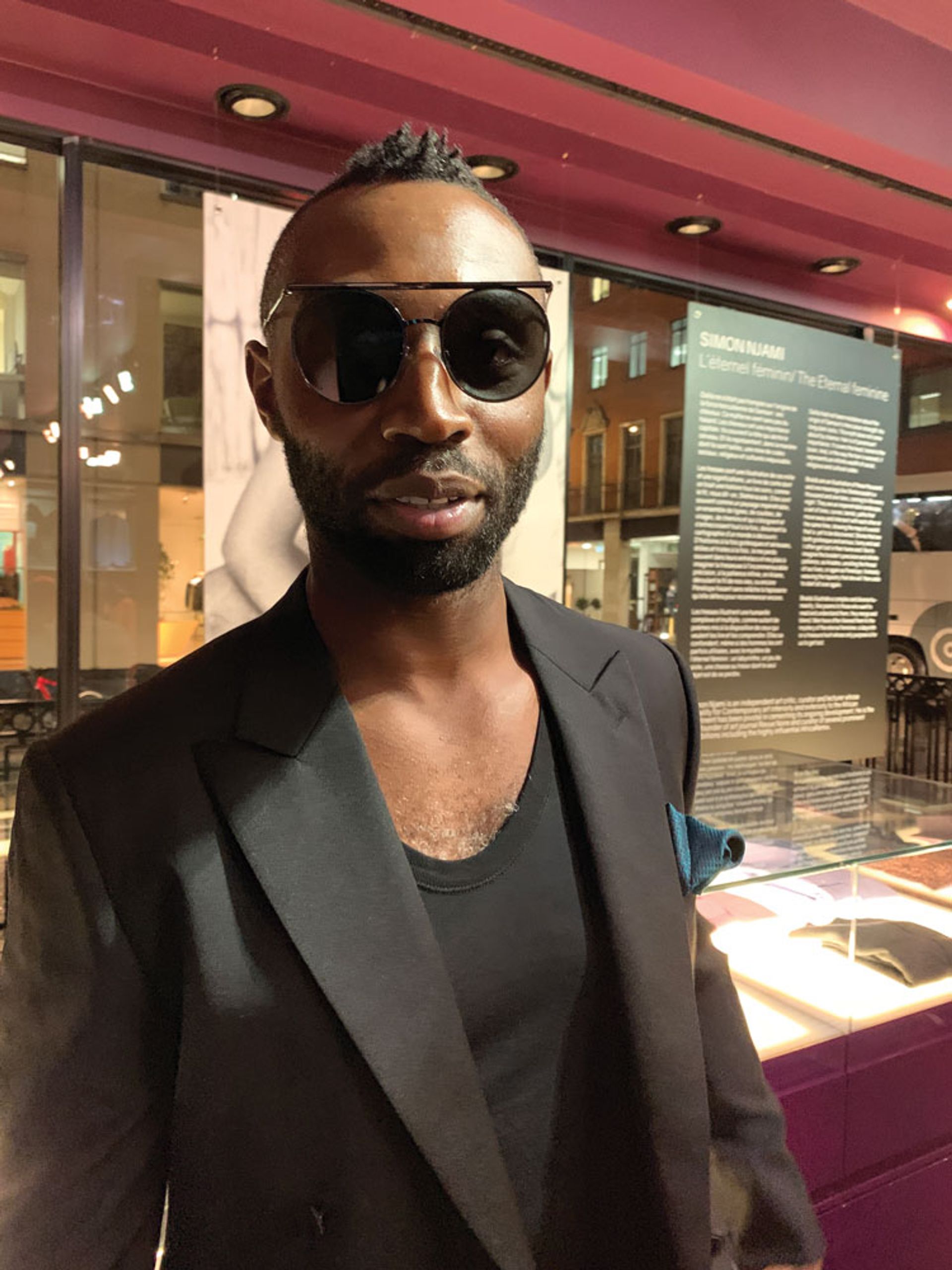 Irvin Pascal, professional boxer turned artist, at Ozwald Boateng's Savile Row store