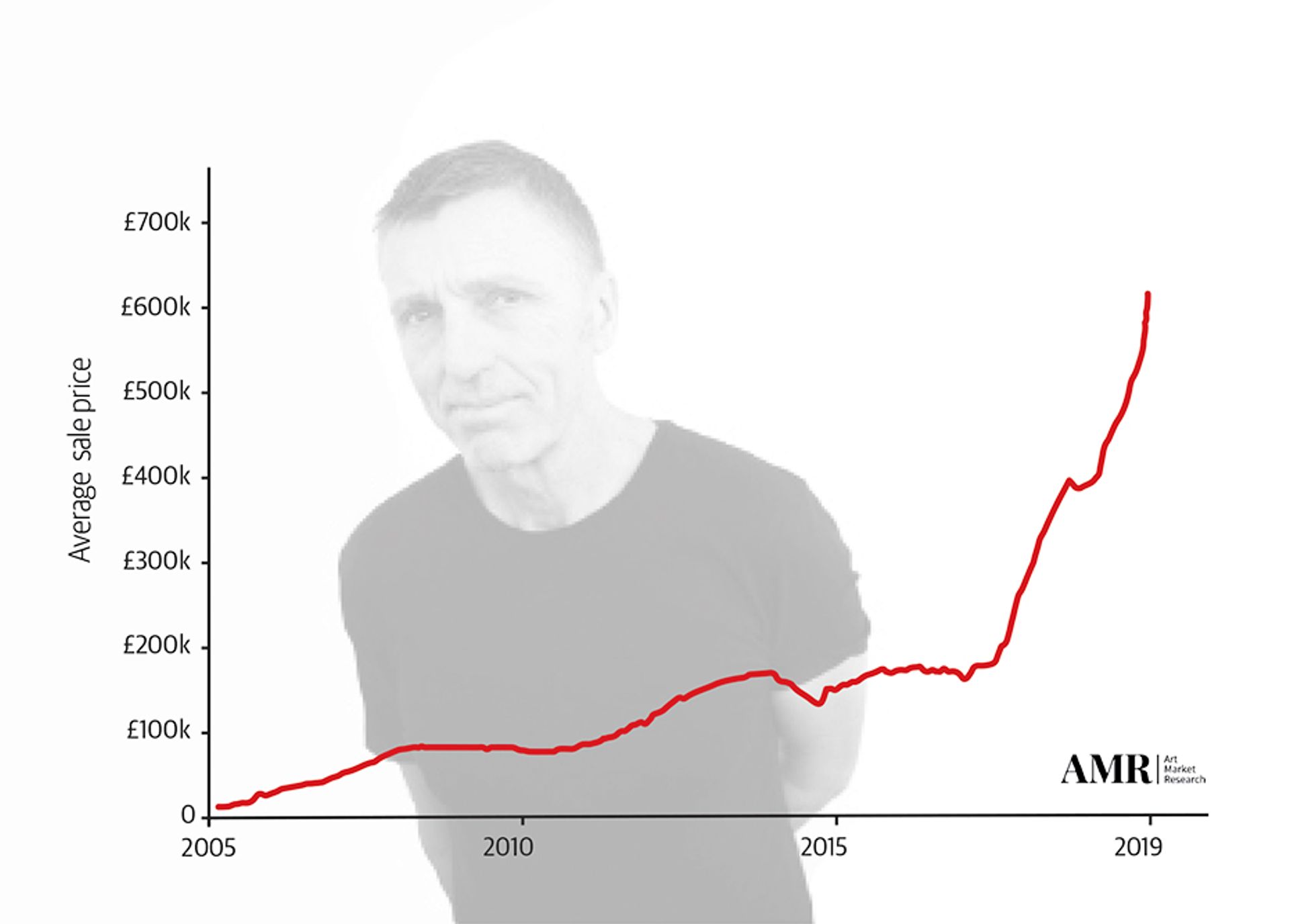 Price charts compiled by Art Market Research show a hefty 5,500% hike in the average value of his paintings since 2005, and a 190% rise since October 2016 alone when his prices first broke the £1m barrier at auction.
