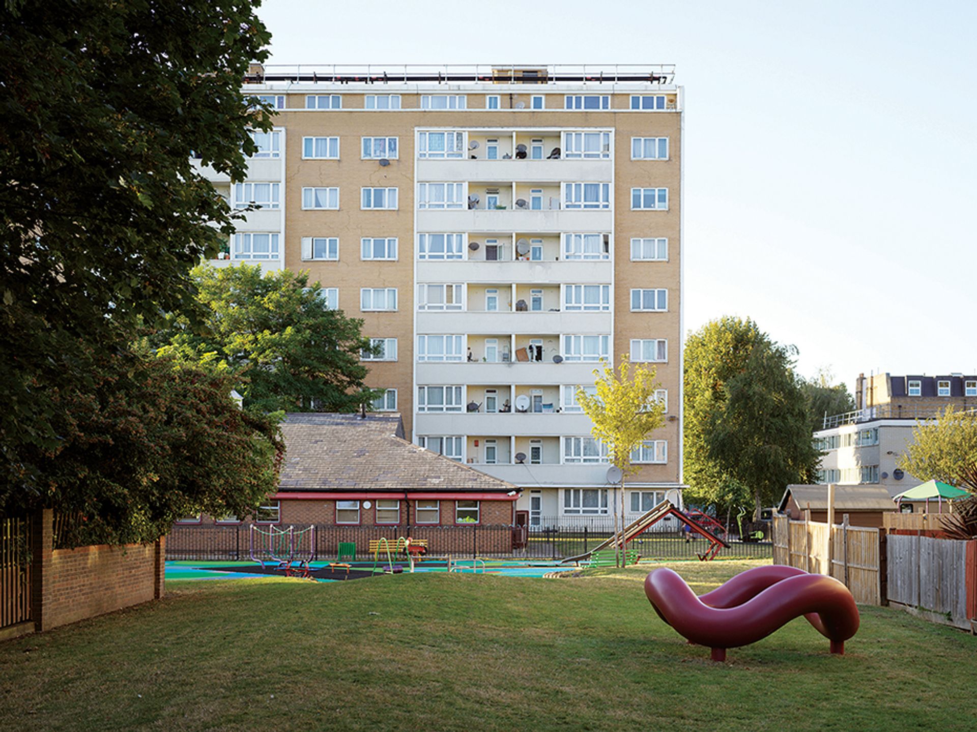 I encountered Noguchi’s work relatively late in life at a show in Mexico that focused on his Playscapes—an incredible project designed to invite children and adults to enjoy forms, and to be creative and play. This sculpture is very simple—it is made from six elbow pipes connected together and sprayed red—but it is so perfect in its form that I did not see how I could add to or improve it in any way. So I felt the strongest gesture was to lend my edition of the work to the people living on the Pelican Estate, so they can sit on, climb on and play with the work.