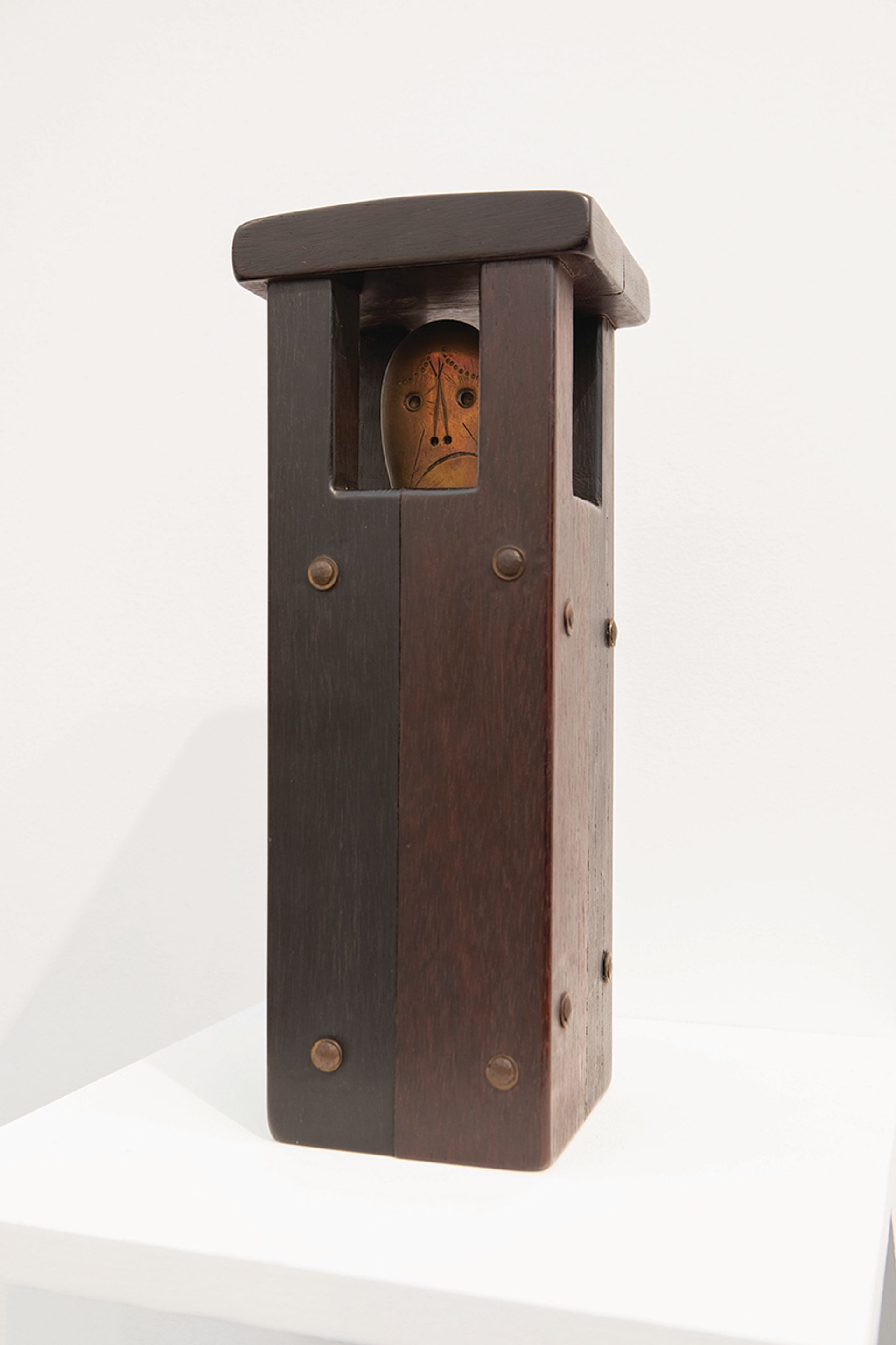 H.C. Westermann, Confined Murderer (1955), walnut, bronze, Venus Over Manhattan, New York: “I got into Westermann through his watercolours; his drawings sucked me in when I saw Eye Infection at the Stedelijk in Amsterdam. I started to collect his drawings, then I got into his sculptures. This piece is super early. There are a few artists I have tunnel vision with—like Westermann and Peter Saul. The character in the sculpture is so alone. But I also love the woodwork, the rivets: it’s so tactile. If you turn it upside down, you’ll find the subject written on the base or on the back. The thing about Westermann is they’re just so nice to handle. That’s not really reflective of my work because the last thing I want somebody to do is touch one of my things as they have such delicate surfaces…” © David Owens