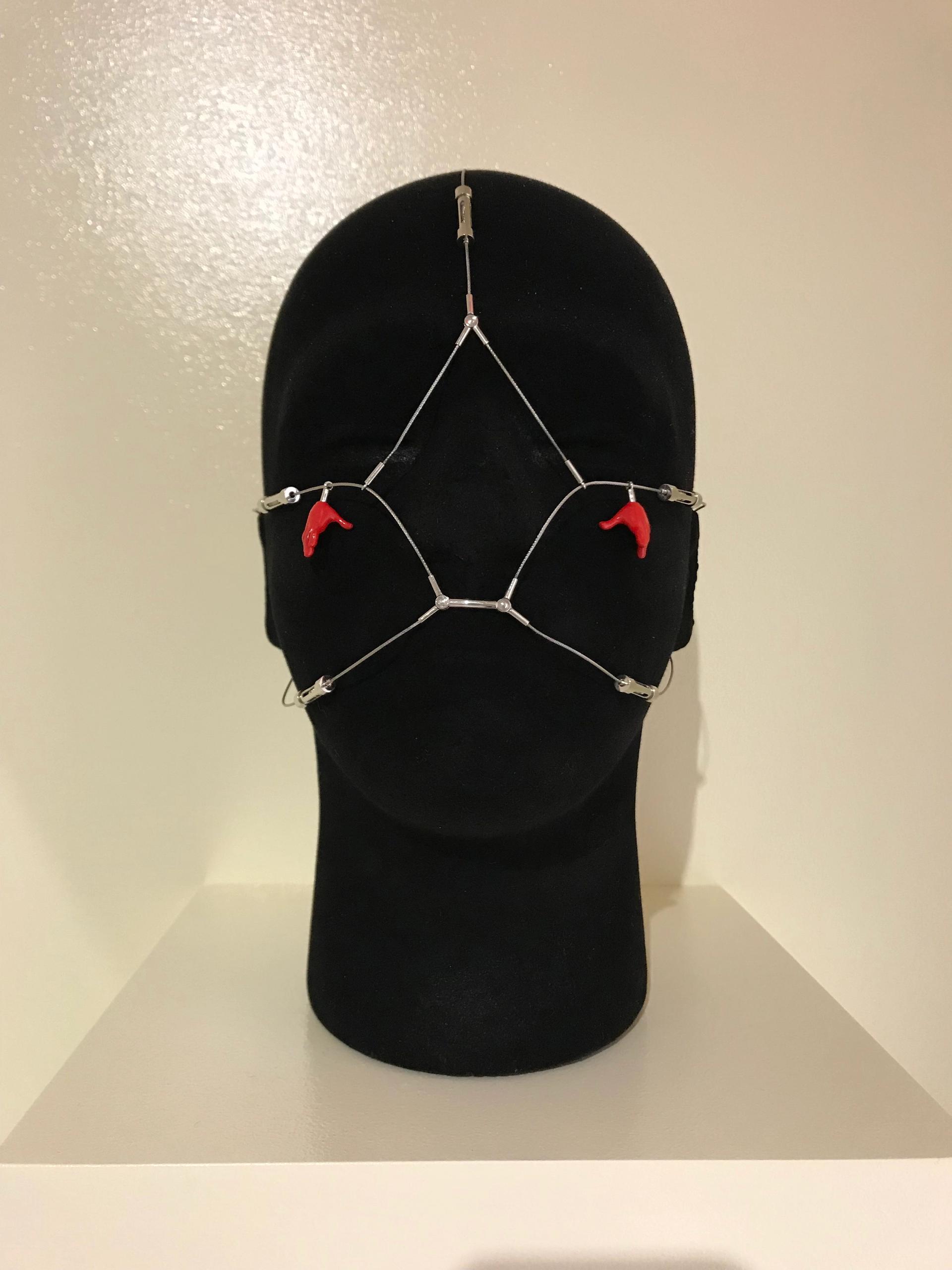 Life and limbs, curated by the artist Anna-Sophie Berger, focuses on “corporeality as a primary concern for design” and features works “that register the body as a habitat that can be imaginatively stretched, altered, modified, adorned, replicated or destroyed,” according to the press release. Madison’s work in the show is a piece of jewellery he designed for the Swiss collection Gems and Ladders, a palladium and steel face harness with two small red hands that hang as charms.