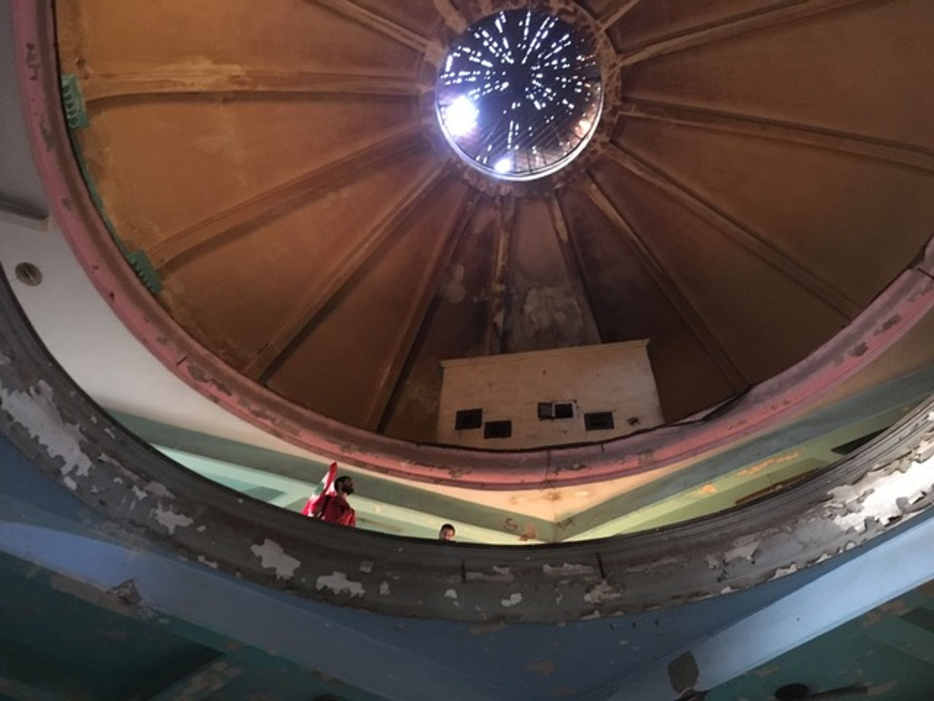 Protestors inside the GrandTheatre in Beirut, a building that has been sealed off from the public since the civil war Photo: Nat Muller