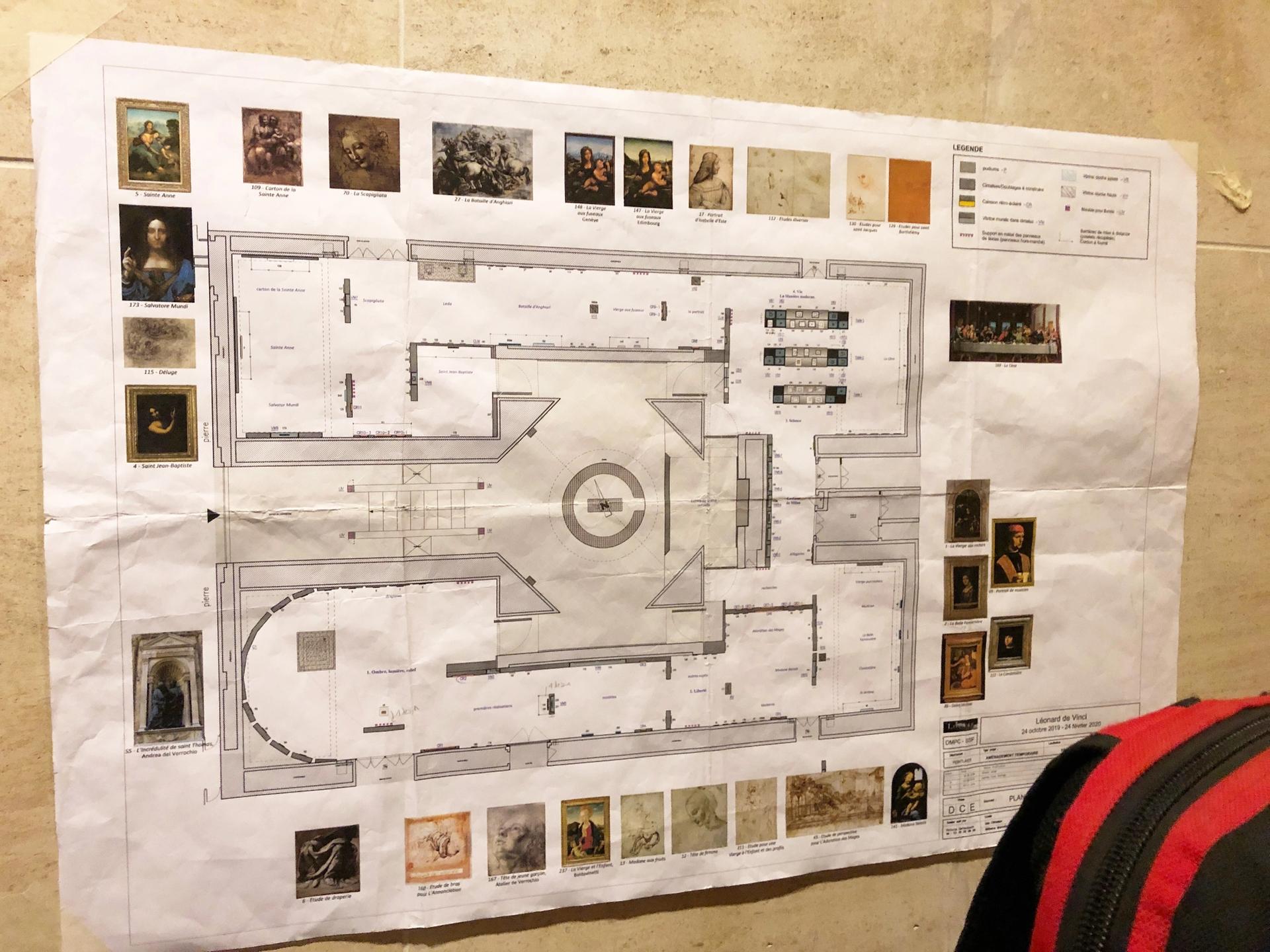 A photograph sent to The Art Newspaper of the original Louvre ground plan for the Leonardo exhibition graphically illustrates that the Salvator Mundi was intended to be part of the show. The plan was removed from the Louvre's exhibition hall at the last minute on Friday, the day of the advance press preview.