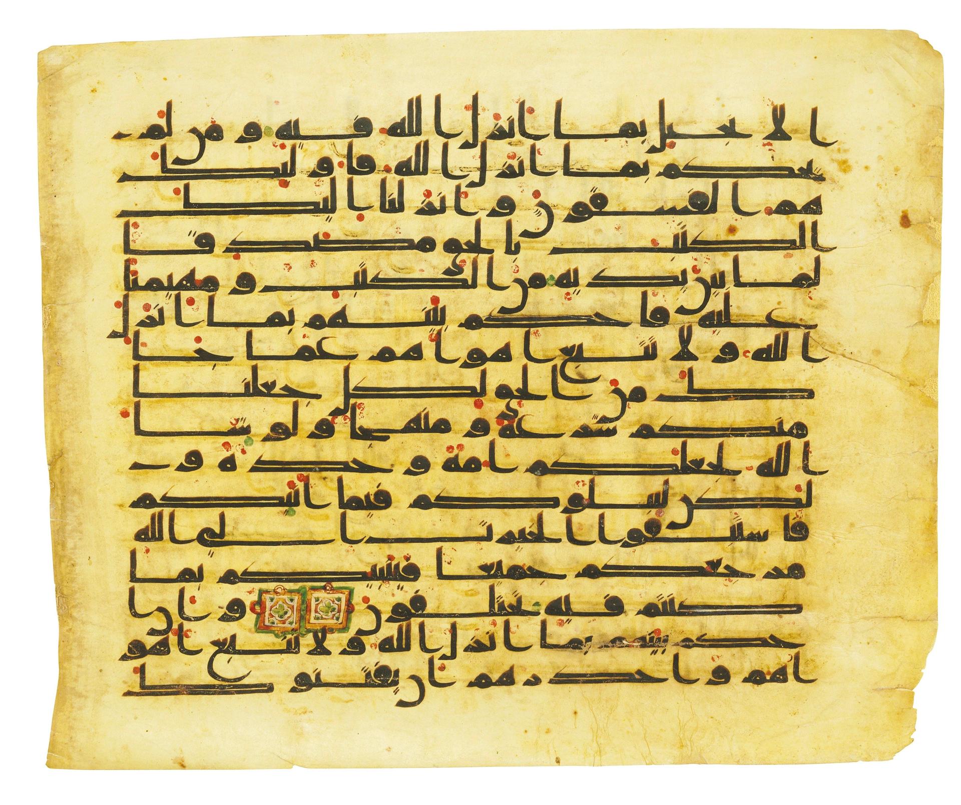 A large Kufic Qur'an section sold for £851,250 Courtesy of Christie's