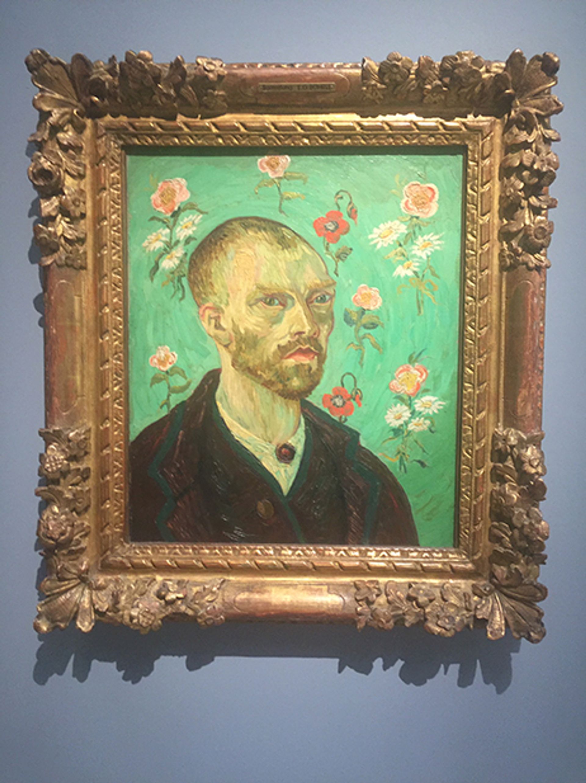 Van Gogh was so popular in Germany that this is where the first fakes appeared on the market. Among the surprises in the Städel show is an apparent self-portrait which is similar to the one which Van Gogh painted for Paul Gauguin (the original is now at the Fogg Art Museum, Cambridge, Massachusetts), but with an added background of flowers. Although this second “self-portrait” was painted as a homage by an admiring artist, Judith Gérard, it was subsequently reworked, with the added flowers, probably by Emile Schuffenecker and then marketed (without Gérard’s knowledge) as an authentic second version of the self-portrait. The Städel is now displaying it as a “fake”.