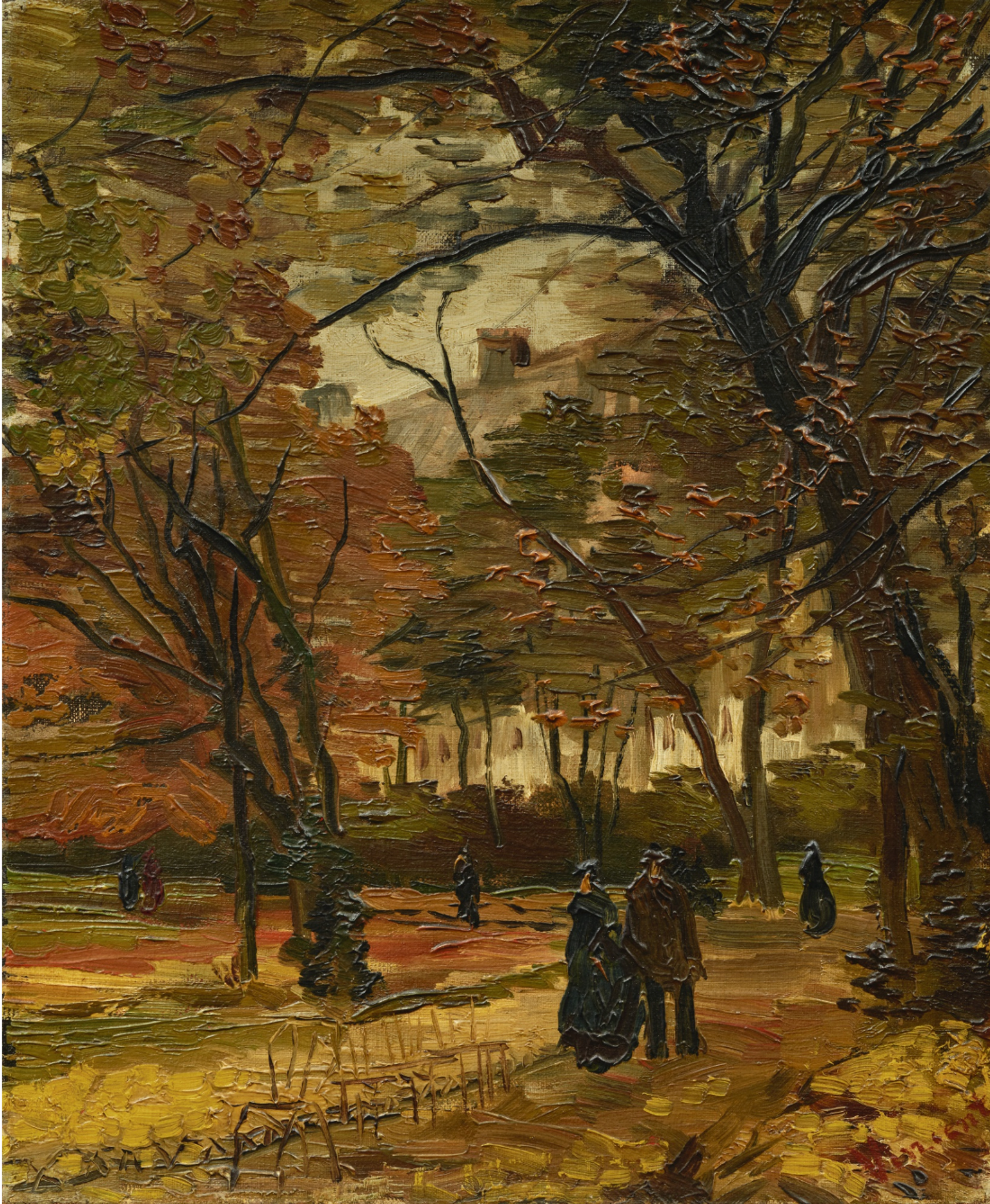 Vincent van Gogh’s People strolling in a Park in Paris (1886), to be auctioned at Sotheby’s, New York, 12 November Courtesy of Sotheby’s