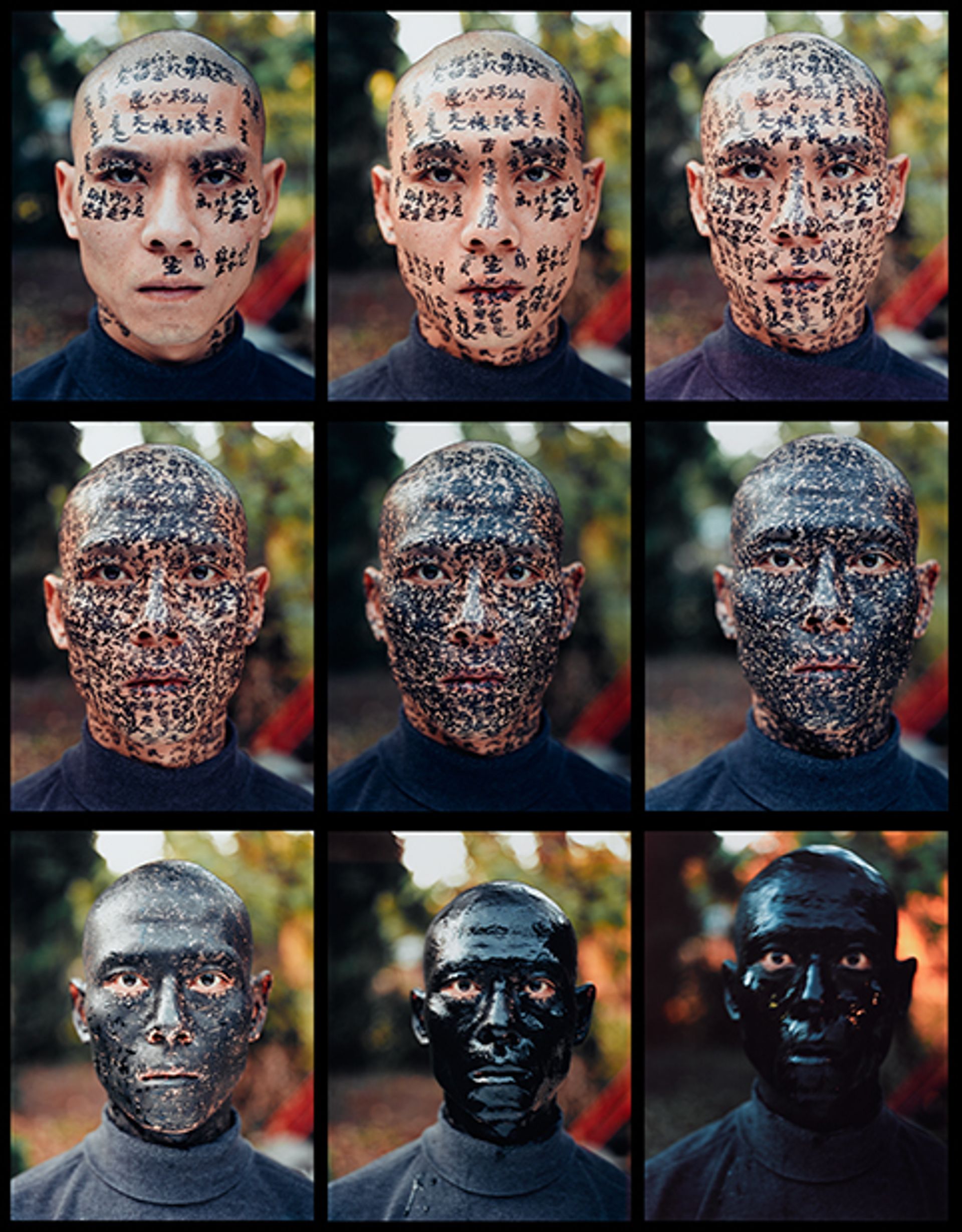 Shanghai-based Zhang Huan made a number of radical, significant body performances in the 1990s in Beijing; Lista stresses that this turn-of-the-century piece documented in nine photographs was a turning point. Zhang asked three calligraphers to write his biography on his face, gradually subsuming his facial features, making him morph into an unsettling, rather ghostly figure. “These different layers of his history make it [the face] completely unreadable,” Lista says. In 1998, the artist declared that: “I cannot say what I am. My identity has vanished.” Zhang Huan, Family Tree (2000). © D.R., Centre Pompidou