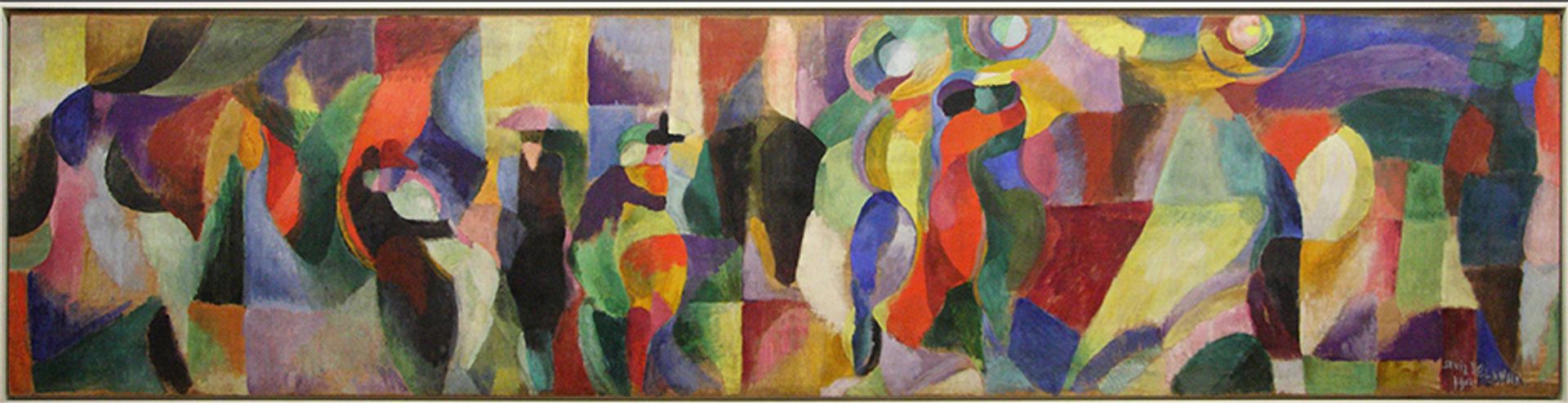 Section one of the exhibition examines the development of the Western avant-garde in the shadow of the industrial revolution born during the 18th century. “You had the machine, introducing the idea of dynamism and vital energy,” says Lista. “There is also this idea of the fusion of art and life; we can see it in this masterpiece by Sonia Delaunay.” The picture, she explains, is a rhythmic representation of a ballroom on the boulevard St-Michel in Paris, Lista adds. Sonia Delaunay and her husband, artist Robert Delaunay, would swirl around the ballroom, dancing in clothes they had designed themselves. Sonia Delaunay, Le Bal Bullier (1913)
