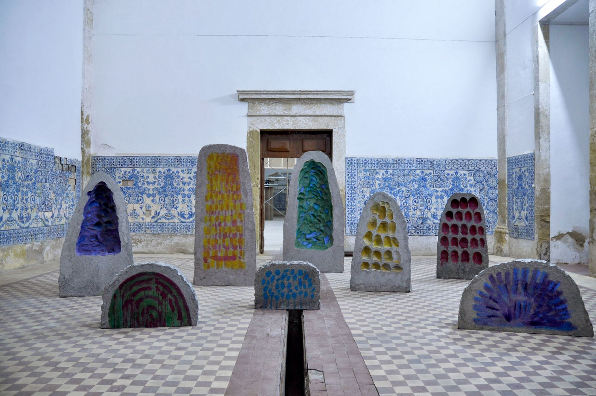 Erika Verzutti’s Mineral (2019) sculptures inside the Monastery of Santa Clara-a-Nova © Courtesy of Anozero