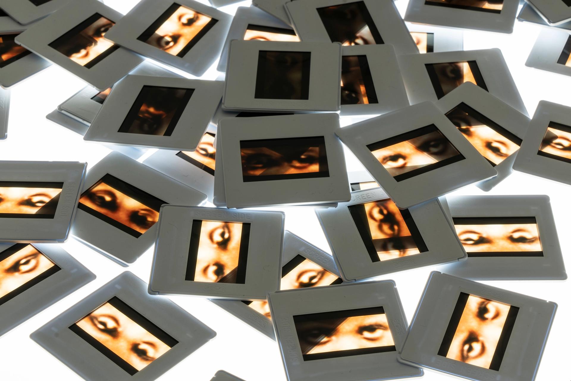 The centrepiece of the exhibition is The Silence of Nduwayezu (1997), a pile of one million slides heaped on a light table, all featuring a close-up of the eyes of one boy: Nduwayezu, a five-year old Tutsi whom Jaar met at a refugee camp in Rubavu. Nduwayezu, like many children, had witnessed the brutal murder of his parents, and had been so traumatised he had not spoken for four weeks.