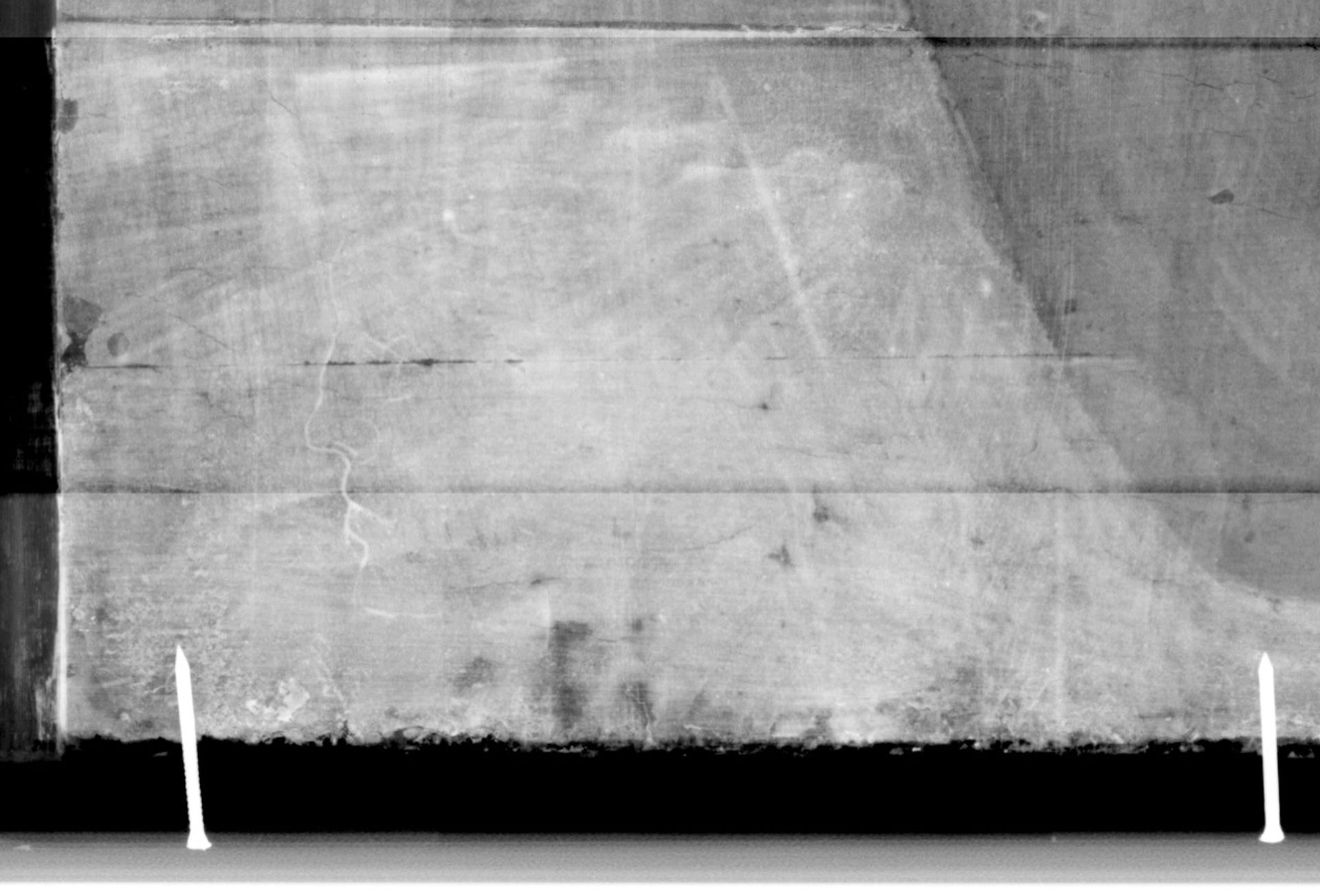 At some point in its past, the work is thought to have been overpainted, with the addition of an arched background that was potentially added to mask the fact that the painting was once part of a larger work.