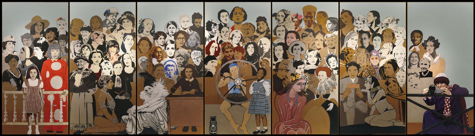“I sat down by my fire in Sundance, and I thought: ‘Okay, how many women are on this cover?’ And there was 12, six of whom were fictitious characters, Petty girls pin-ups. Shirley Temple three times. The only women on the cover were chosen by Peter and myself. The Beatles didn't choose any women.” SLC Pepper “was meant to have a gender balance of 50% women, 50% men”, and Work in Progress features only women from across the world and across history. “It’s a mural of women who are of interest or of accomplishment. And eventually those became women who were a catalyst within the arts and sciences and social activism.” The work exists as an original mural, now around 60 ft wide, and in vinyl reproduction form, a 28 ft version of which is on show as part of Haworth’s exhibition Close Up at the Pallant House Gallery, Chichester, UK. The portable reproduction was also taken on the Women’s March in 2017 in Washington, which Haworth describes as “one of the best moments of living on this planet”.