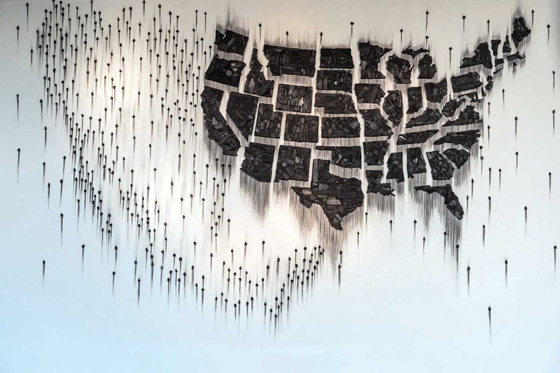 Teresita Fernández’s Fire (United States of the Americas) 3, (2017) is made from lumps of charcoal Courtesy of the artist and Lehmann Maupin