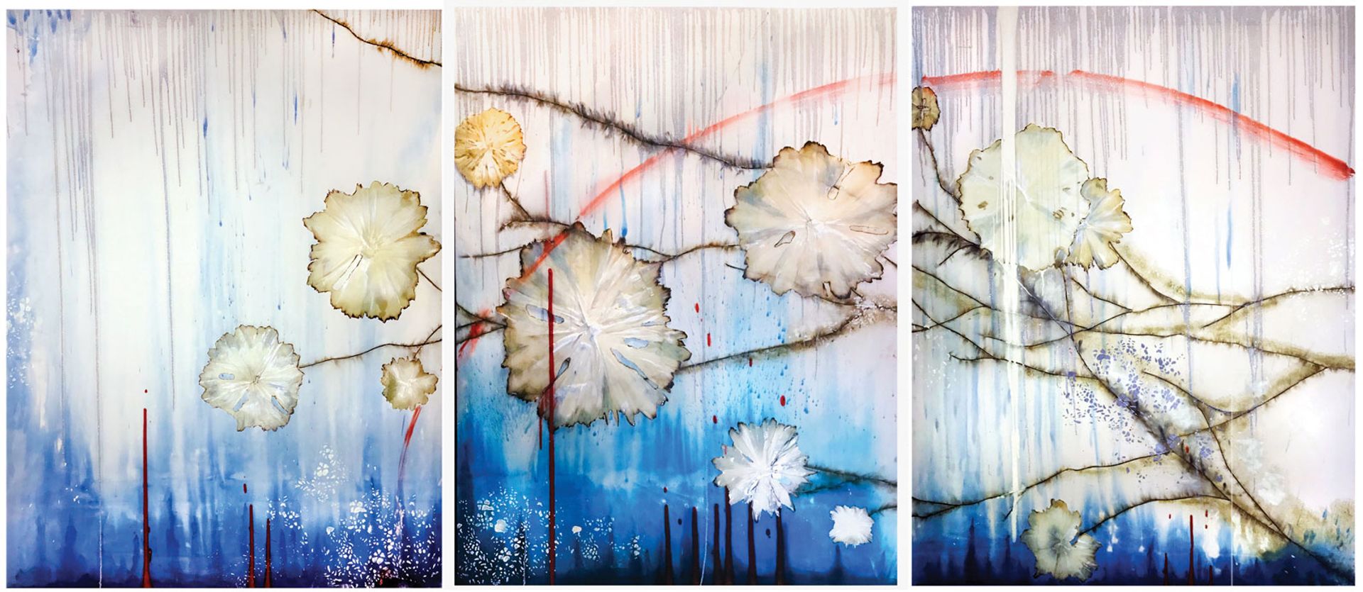 A fantastical installation made up of 180 coloured resin sculptures is suspended from the ceiling of the Jewish Museum of Florida-FIU, courtesy of the Miami-based artist Mira Lehr. The new series, based on seven kinds of plants mentioned in the Torah, are joined by ten new paintings including the triptych Creation (2017), which is made from dyed Japanese paper and one of the 85-year-old artist’s favourite materials: gunpowder. We spoke to Lehr about the environment, her love of fire and how Miami’s art scene has changed over the past six decades.