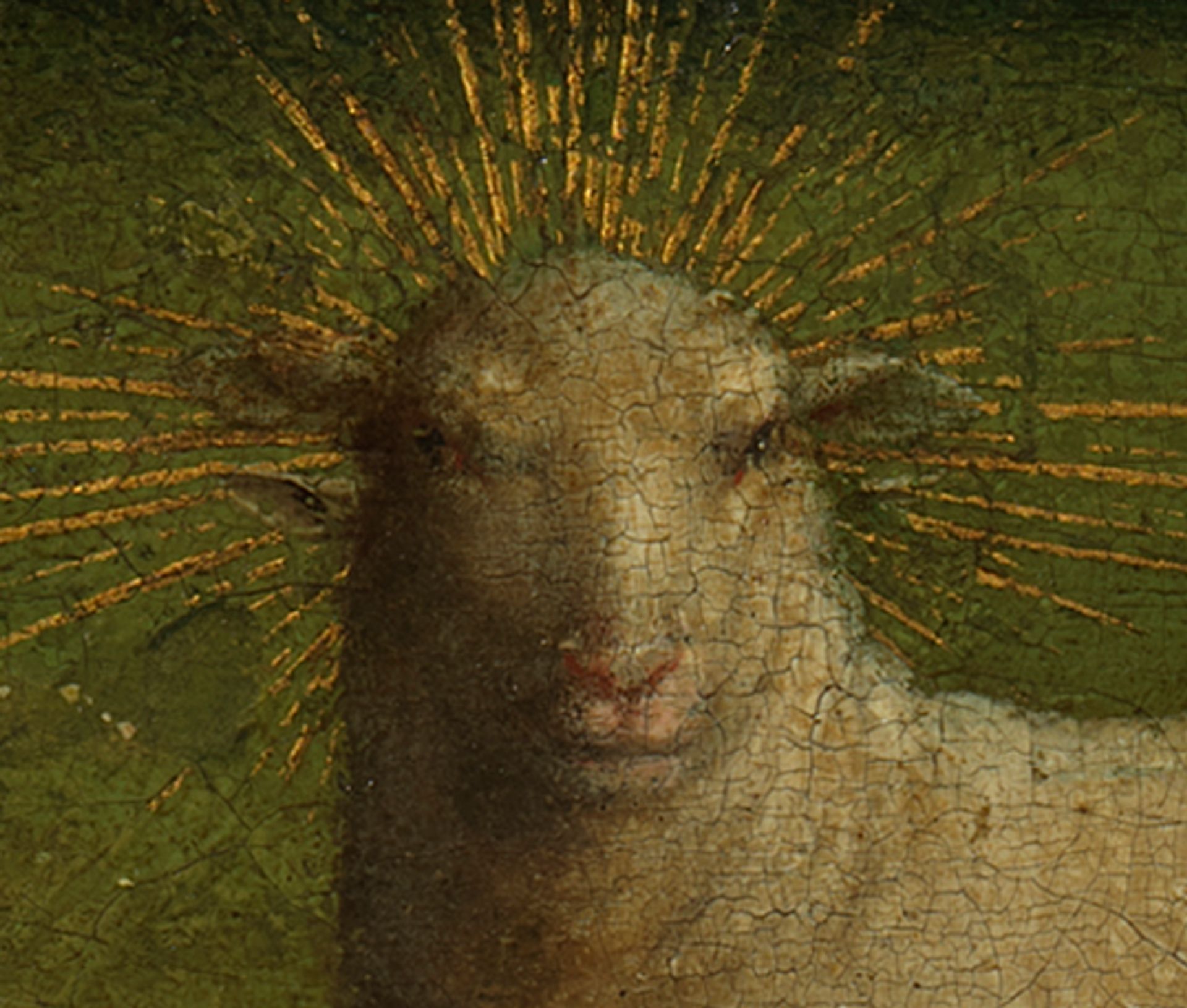 The humanised face of the lamb was disguised by a 16th-century overpainting across the central panel Image: St Bavo’s Cathedral; © Lukasweb; photo: KIK-IRPA. Restorers: © KIK-IRPA