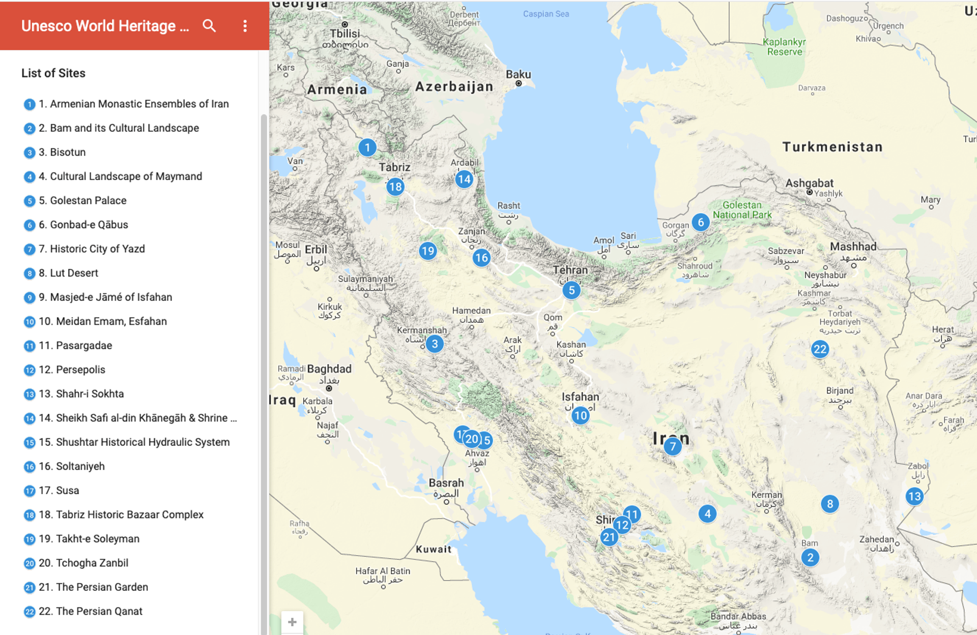 Iran has 22 cultural sites on the Unesco World Heritage List Map: welcometoiran.com