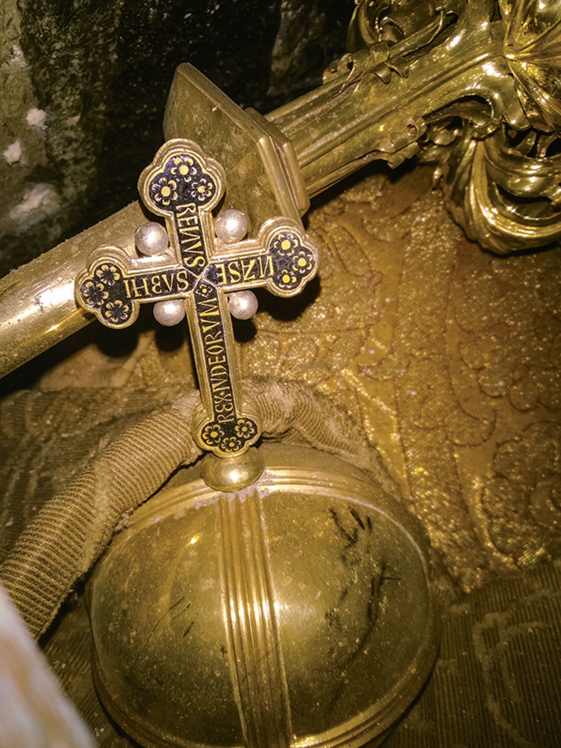 Franz Kirchweger, a curator at the museum, says that viewing the images, he felt “like Howard Carter, who first saw the riches in Tutankhamun’s tomb”. Not only was the emperor’s skeleton intact, covered with funerary textiles, but he had been laid to rest with his sceptre and orb. Most importantly, he wears his enameled gilded mitre-crown, a type of tall crown used by Habsburg rulers up until the end of the Holy Roman Empire in 1806.