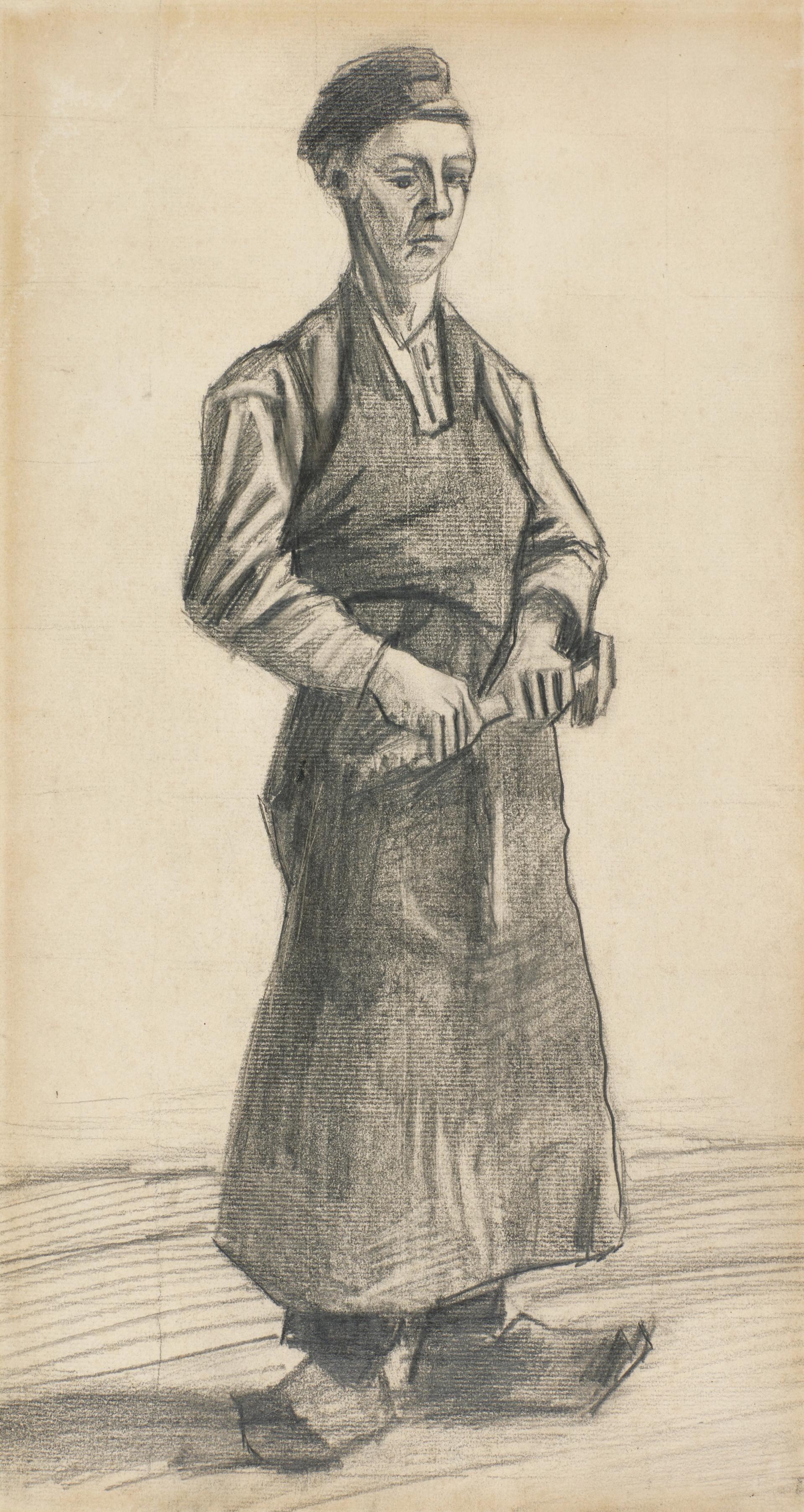 Another of the drawings is sometimes thought to depict a carpenter from the workshop which lay just beneath the modest apartment that Van Gogh shared with the former prostitute Sien and her two children. However, Sotheby’s identifies the gaunt-faced man as a blacksmith, because of the type of hammer he holds and his heavy leather apron. In The Hague Van Gogh knew a blacksmith, who helped make a perspective frame, and he possibly could have been the model. The drawing is estimated at £450,000-£550,000.